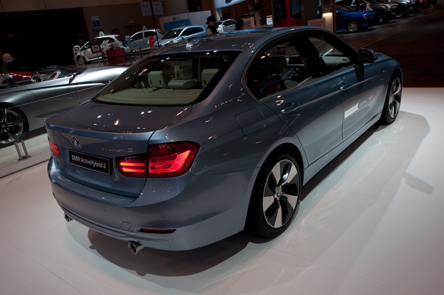 BMW’s 3 series Active Hybrid is powered by a force-fed 3 liter inline 6, augmented by an electric motor outputting 35 hp. The result is silent operation a low speeds as the engine shuts down and the car glides along on electric power. But step deeply on the throttle and the inline 6 will wake up – catapulting you forward with the additional zing of the electric motor.