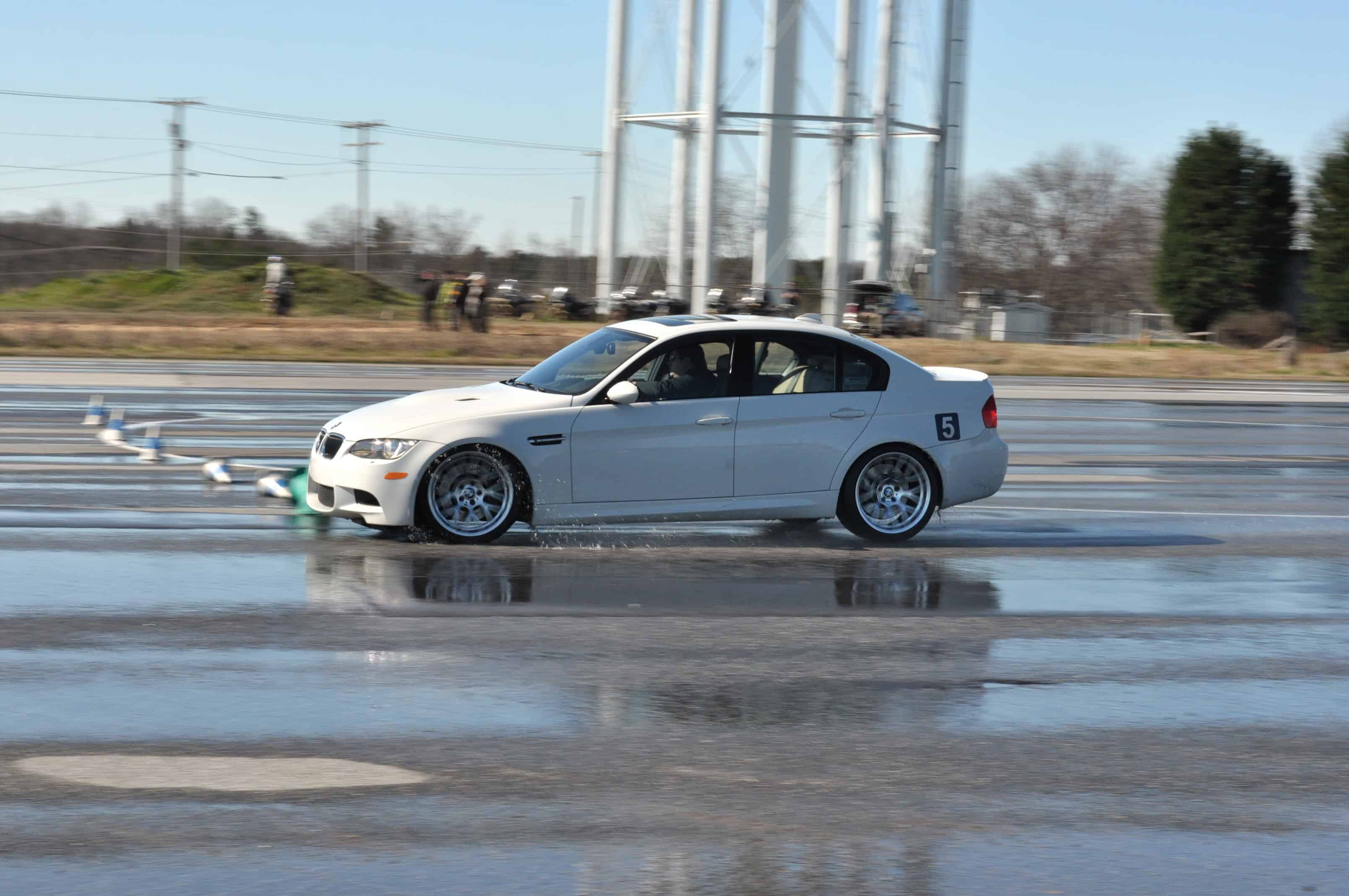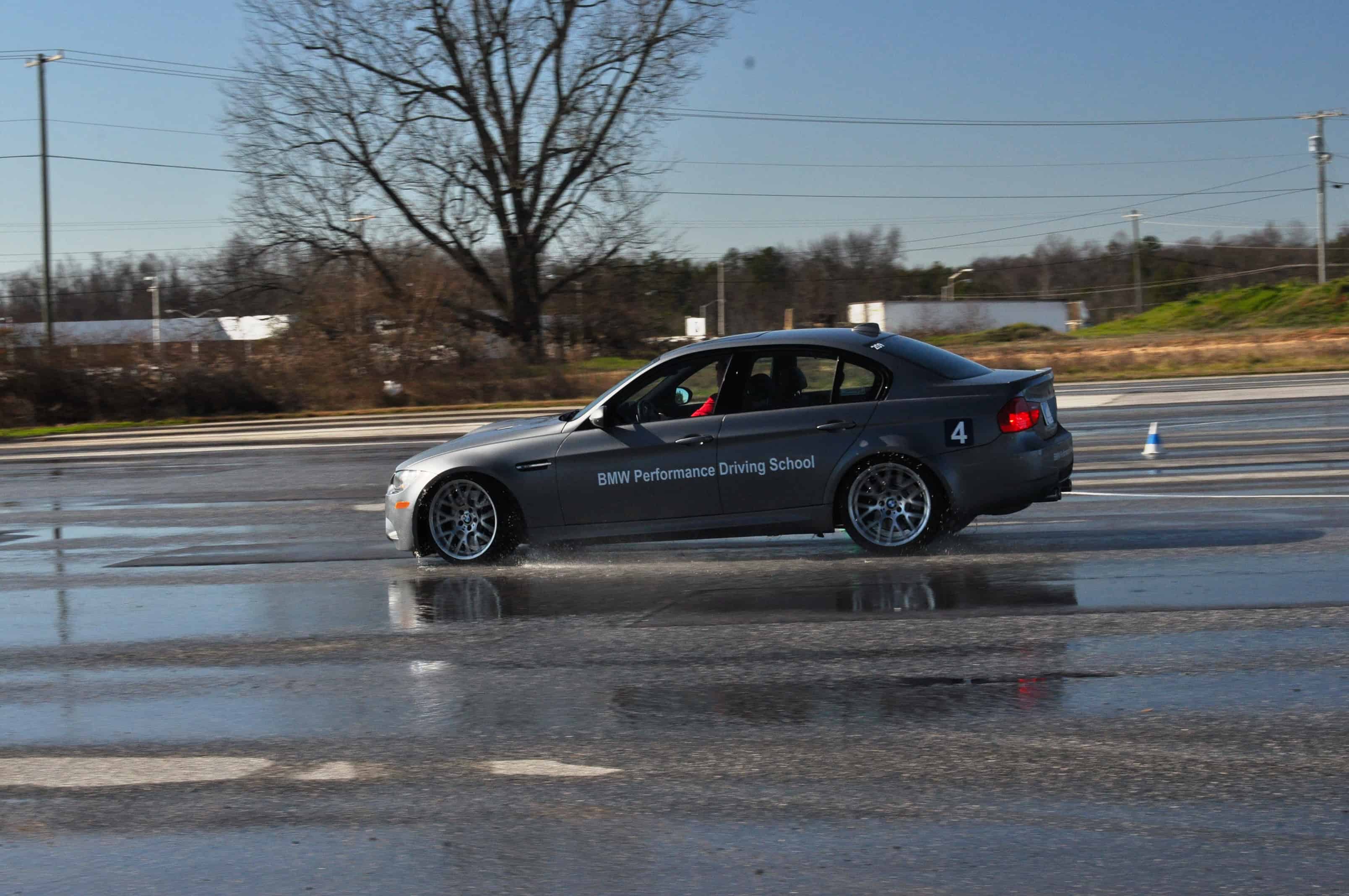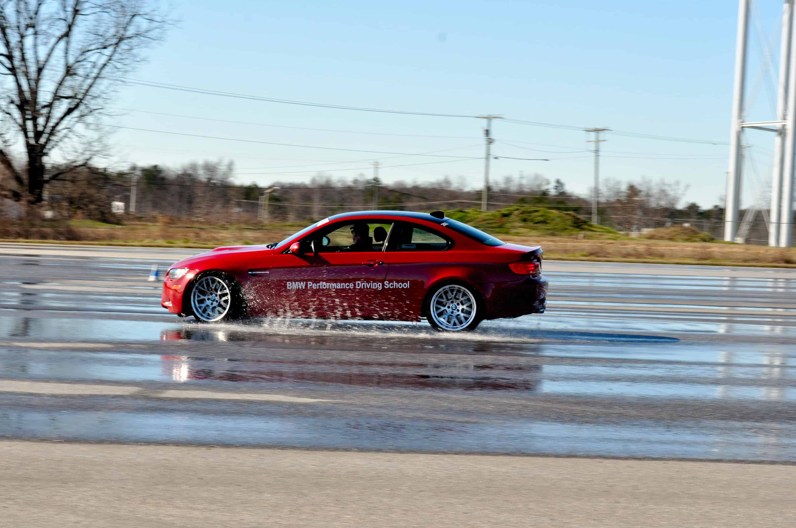 Our first exercise consisted of taking the M3’s to a smaller segment of the course emulating a small version of the famous Laguna Seca corkscrew followed by wider sweeping turns with an emphasis on turn-in points, tracking the cars out and the most important lesson of all: always keep your eyes up and pointed toward where you want the car to be. To help us, cones were stragetically placed throughout the course as a target for track out and turn in points along with radios in all cars for the instructors to provide both constructive criticism to each driver but also praise as we, as a group, began to refine our technique. This was one of the most critical skills to learn of all that they taught us. The body has a natural tendency to guide the car in the direction you’re looking. So, in a spin, if you’re looking at where you might crash – odds are, you’ll end up exactly where you don’t want to be. To counteract this, keeping your eyes in the direction away from the spin will help to steer out of the spin – something that sounds almost mindlessly easy in theory but proves far more difficult to master as it goes against the average driver’s tendency to look only a few feet beyond the nose of the car.
