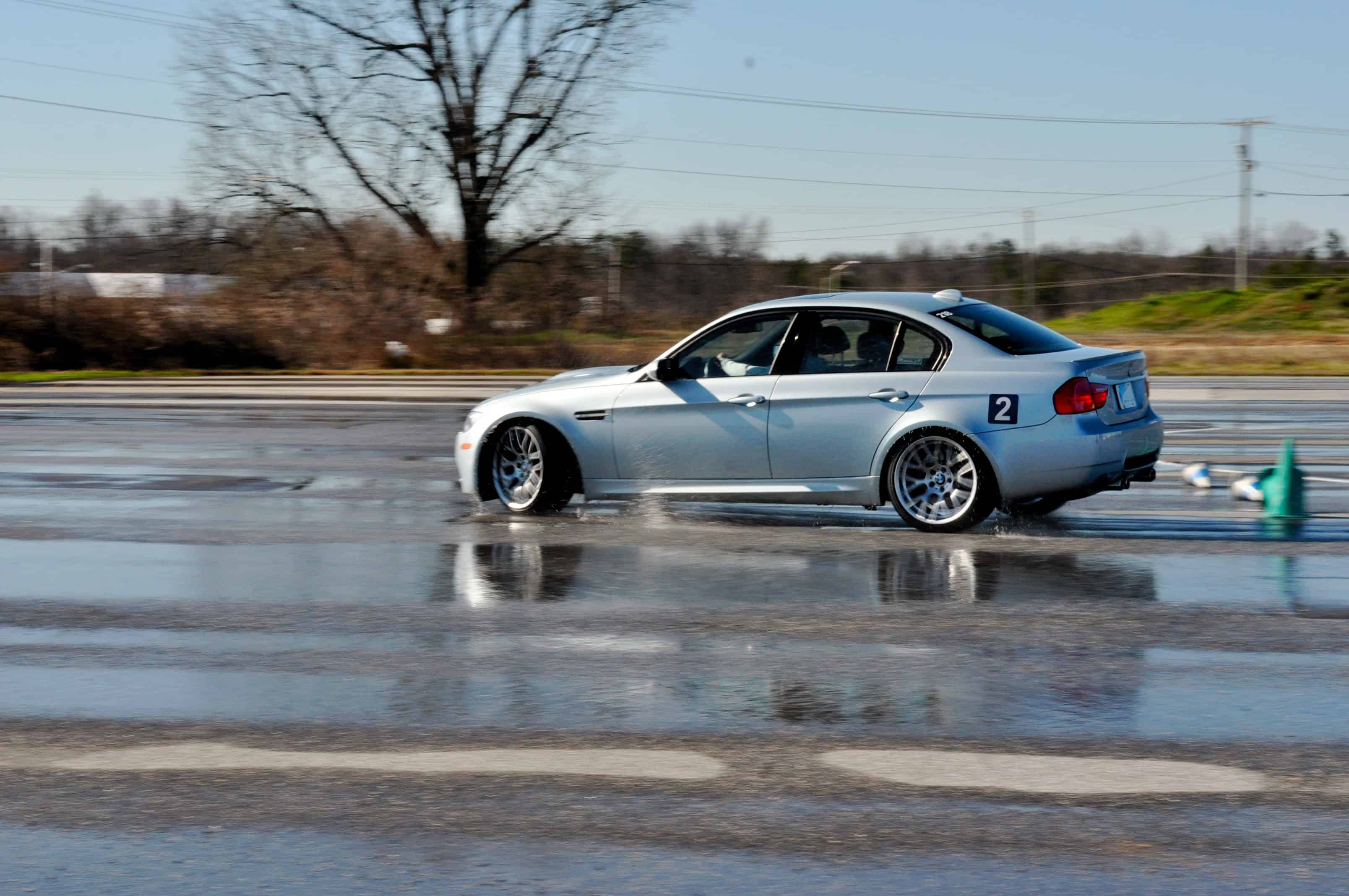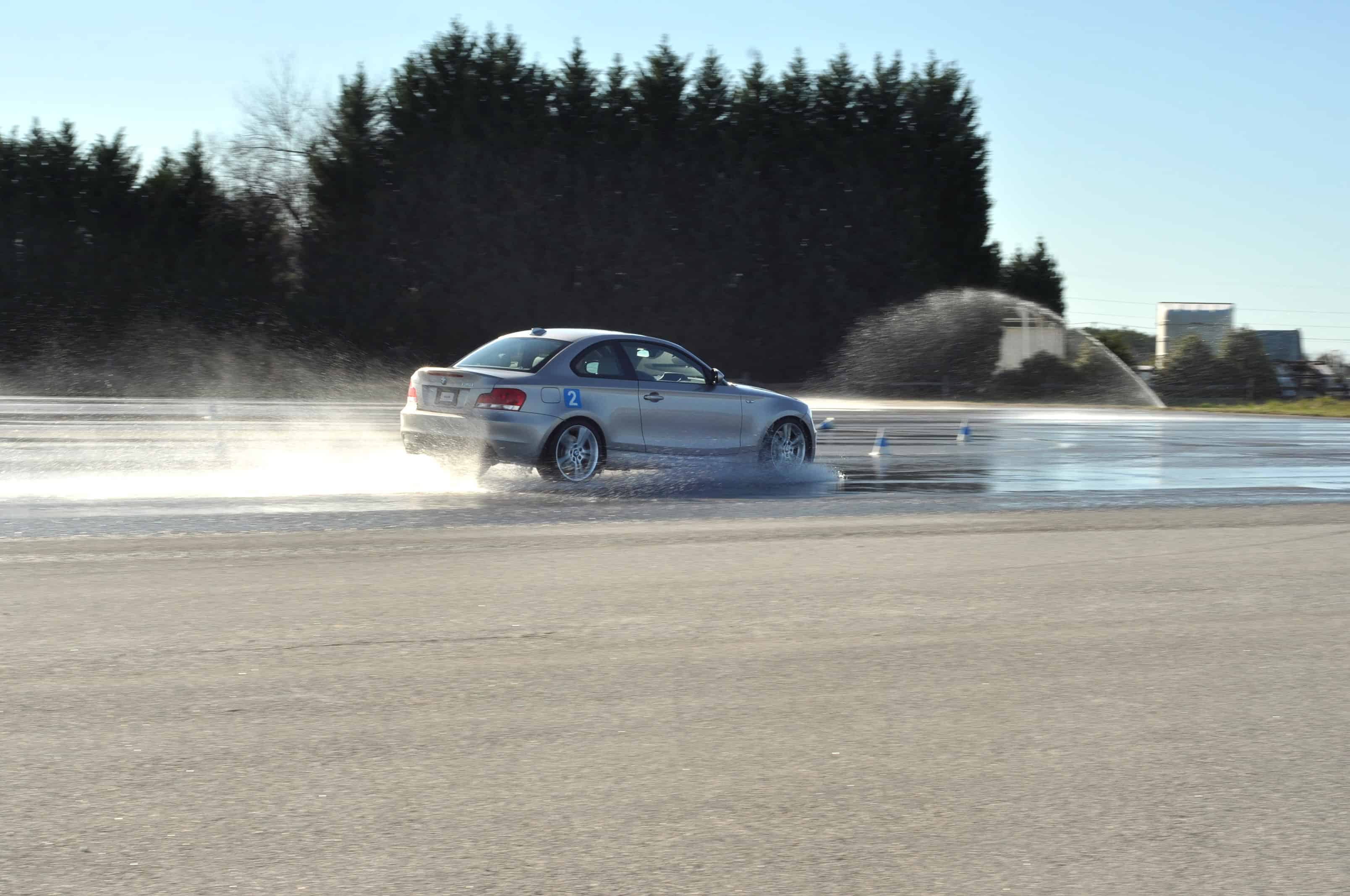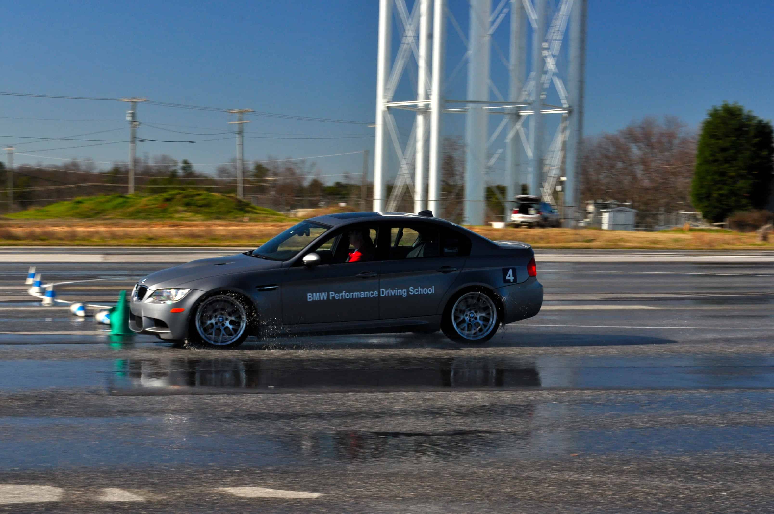 Our first exercise consisted of taking the M3’s to a smaller segment of the course emulating a small version of the famous Laguna Seca corkscrew followed by wider sweeping turns with an emphasis on turn-in points, tracking the cars out and the most important lesson of all: always keep your eyes up and pointed toward where you want the car to be. To help us, cones were stragetically placed throughout the course as a target for track out and turn in points along with radios in all cars for the instructors to provide both constructive criticism to each driver but also praise as we, as a group, began to refine our technique. This was one of the most critical skills to learn of all that they taught us. The body has a natural tendency to guide the car in the direction you’re looking. So, in a spin, if you’re looking at where you might crash – odds are, you’ll end up exactly where you don’t want to be. To counteract this, keeping your eyes in the direction away from the spin will help to steer out of the spin – something that sounds almost mindlessly easy in theory but proves far more difficult to master as it goes against the average driver’s tendency to look only a few feet beyond the nose of the car.