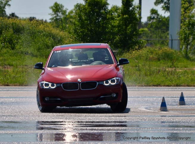 The new F30 BMW 3 Series shows up at the BMW Performance Center School in Spartanburg, South Carolina. Our friend and spy photographer Palbay spotted a F30 BMW 335i Sport Line going around the wet skidpad, one of the most fun exercises at the driving school.