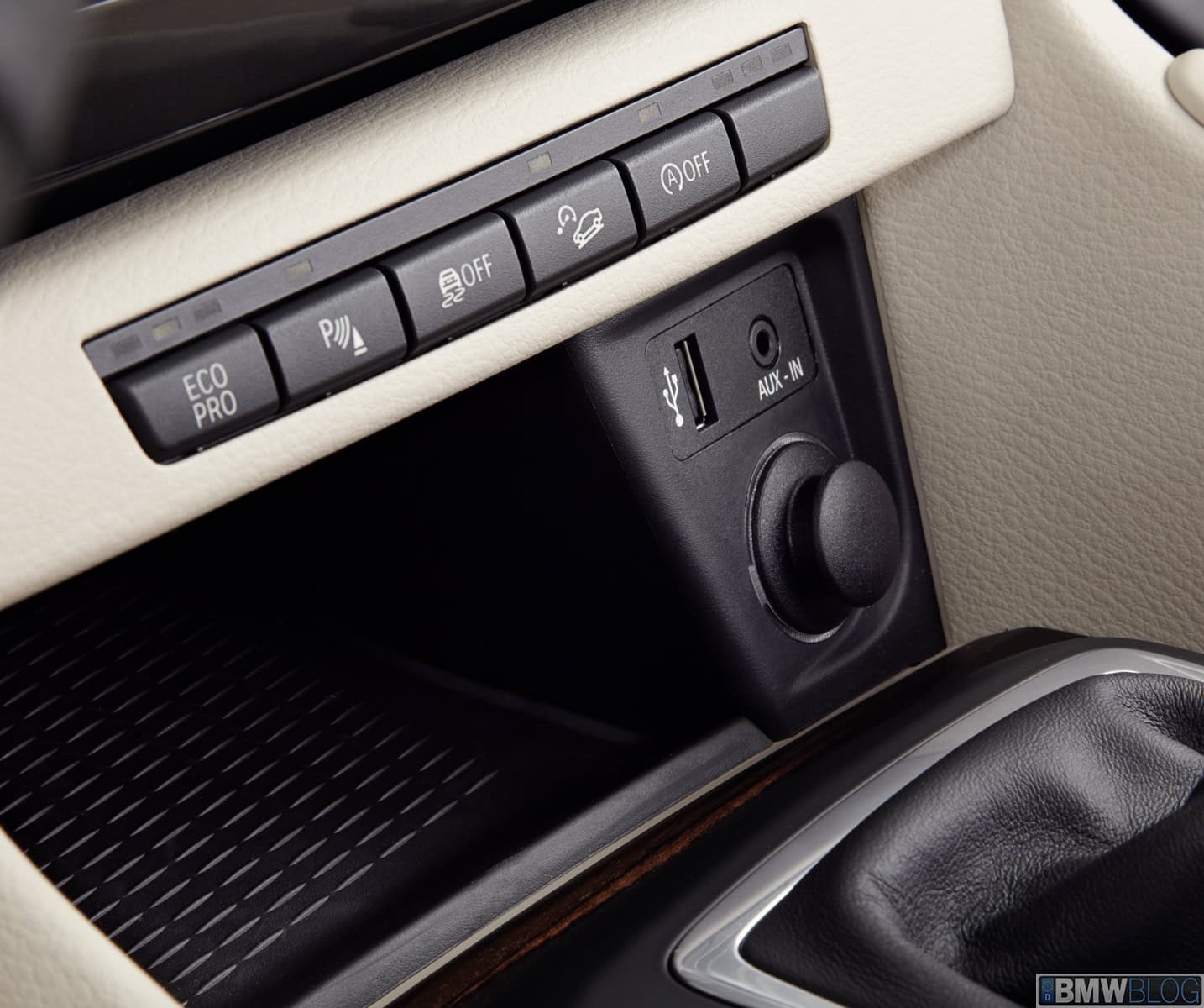 The new BMW X1 comes with a storage compartment in the center of the instrument panel. In vehicles with the optional navigation system, this houses the central Control Display for the iDrive operating system. Chrome accents on the side surrounds of the onboard monitor highlight this feature. High-quality electroplated surrounds for the gearshift lever and the center console cup holder as well as a chrome clip on the headlight switch add the finishing touches to the interior’s exclusive ambience.