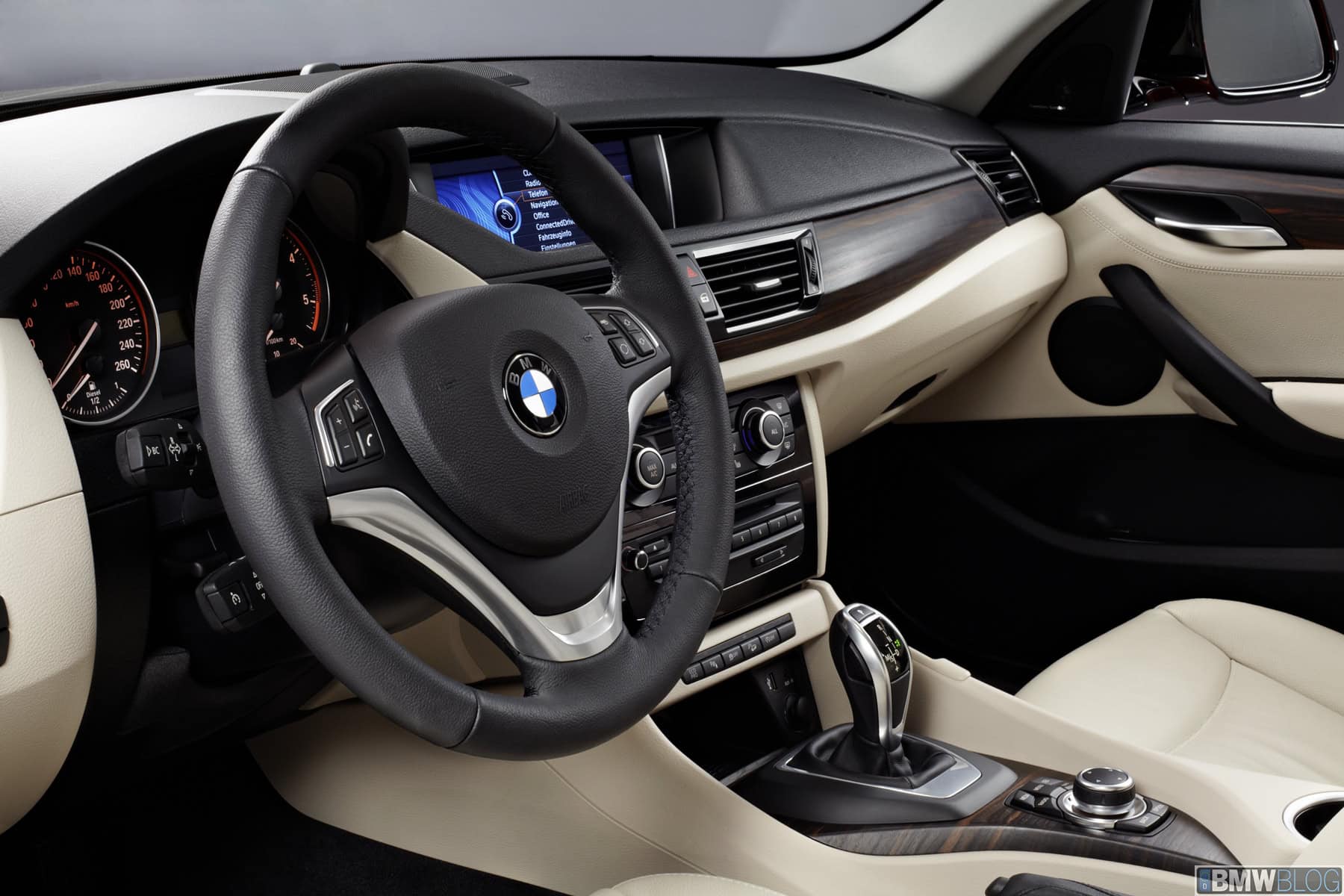 BMW Lines are available for all models, allowing drivers to tailor their new BMW X1 with individual style based on their personal preferences. The BMW xLine allows the sturdy versatility of the sub-compact BMW X model to be emphasized. It includes undertray elements for the front and rear fascias, side skirt covers, air intake and kidney grille slats in Titanium Silver matt finish, as well as exclusive 18-inch alloys in Y-spoke design. The distinctive charisma of the new BMW X1 is also reflected in the interior, starting with entry strips bearing the lettering “BMW xLine”, a leather-wrapped multifunction sports steering wheel, as well as exclusive interior trim strips in Dark Copper high-gloss and floor mats with color-matched piping. In conjunction with the BMW xLine, optional Nevada leather upholstery is available, with the exclusive color shades Terra and Oyster which are also used on the door trim panels and the lower section of the dashboard. The head rests feature a distinctive embossed “X”. As an additional option, interior trim in Fineline Bay matt fine wood finish is available exclusively in combination with the BMW xLine.