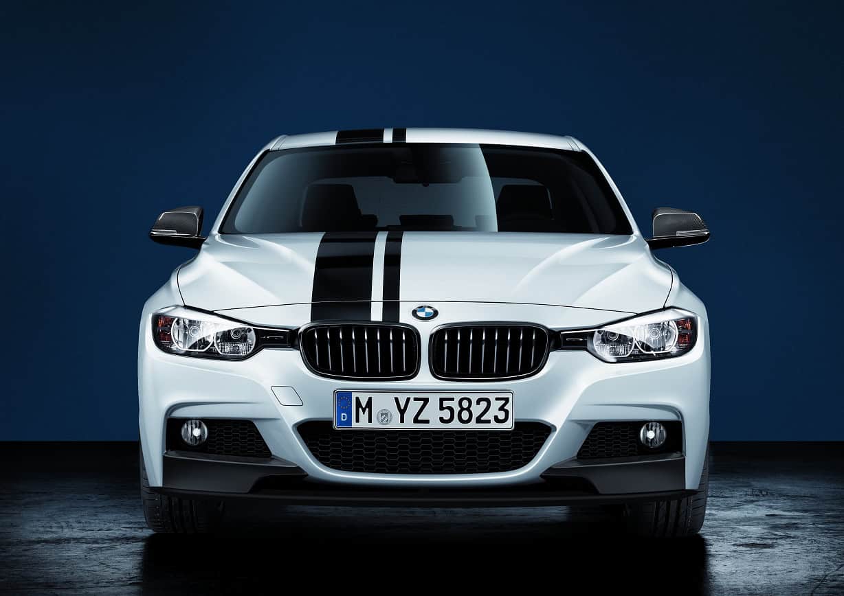 High-gloss black kidney grilles are available to create a sporty, menacing character for the 3 Series and 5 Series Sedan. Drivers of the 3 Series can personalize the exterior of their vehicle even further with BMW M Performance Sport stripes. These stripes are printed on high-quality PVC film and are available in black or white.