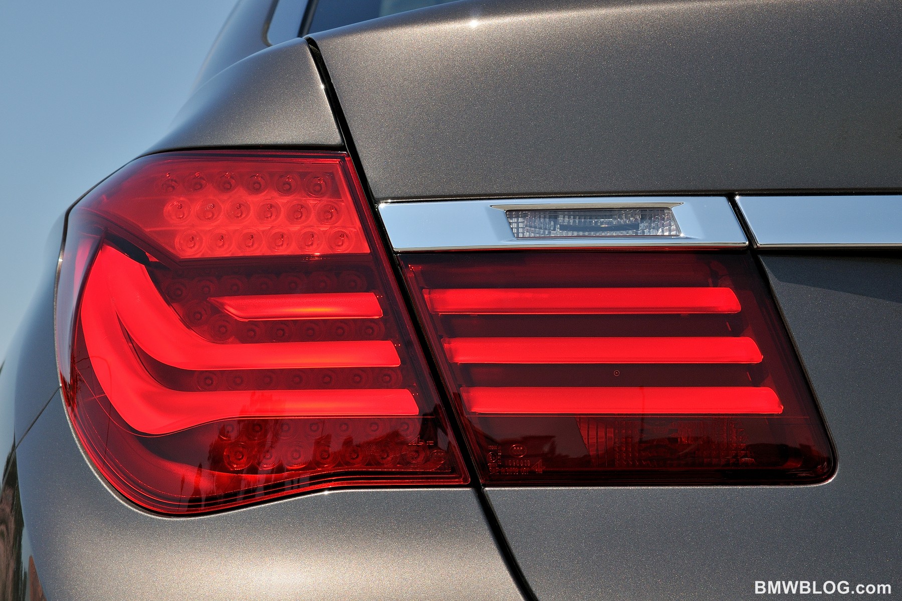 The powerful rear of the BMW 7 Series reflects its performance potential. The horizontal lines and subdivision of the rear into several levels visually lowers the height of the car. The design of BMW’s traditional L-shaped taillights, linked by an eye-catching chrome strip, remains unchanged. They are now richer in contrast thanks to differing shades of red. A second, delicately sculpted chrome strip draws a visual connection between the two slim reflectors in the rear apron. Another slim chrome bar between the four chromed tailpipe tips in the rear apron is a distinguishing feature of the V12 760Li flagship.
