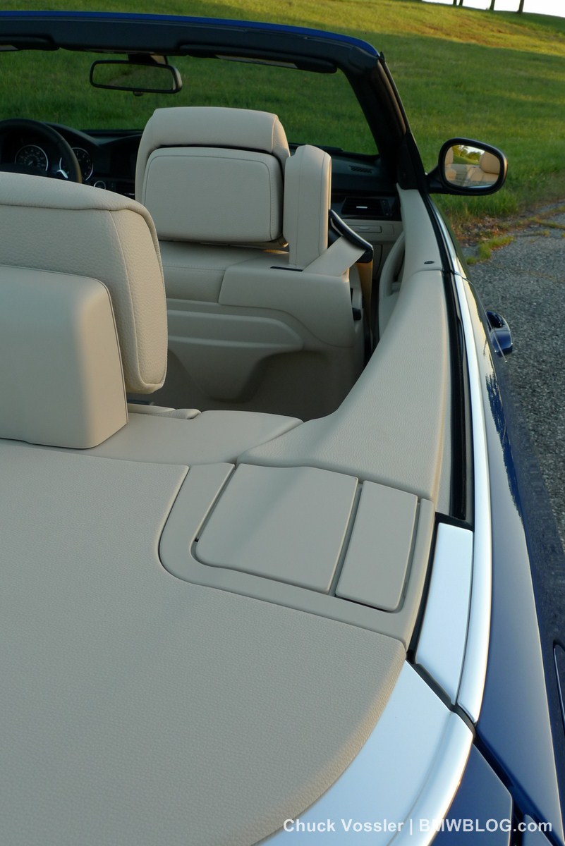 With the hard top up, you do get a very reasonable 9.0 cubic feet of trunk space complete with an optional large pass through folding rear seat. This pass through however has BMW’s folded bag to keep the cabin clean from whatever it is you are stuffing through. This folded bag in my experience is a huge PITA to fold back properly flat once unfurled.