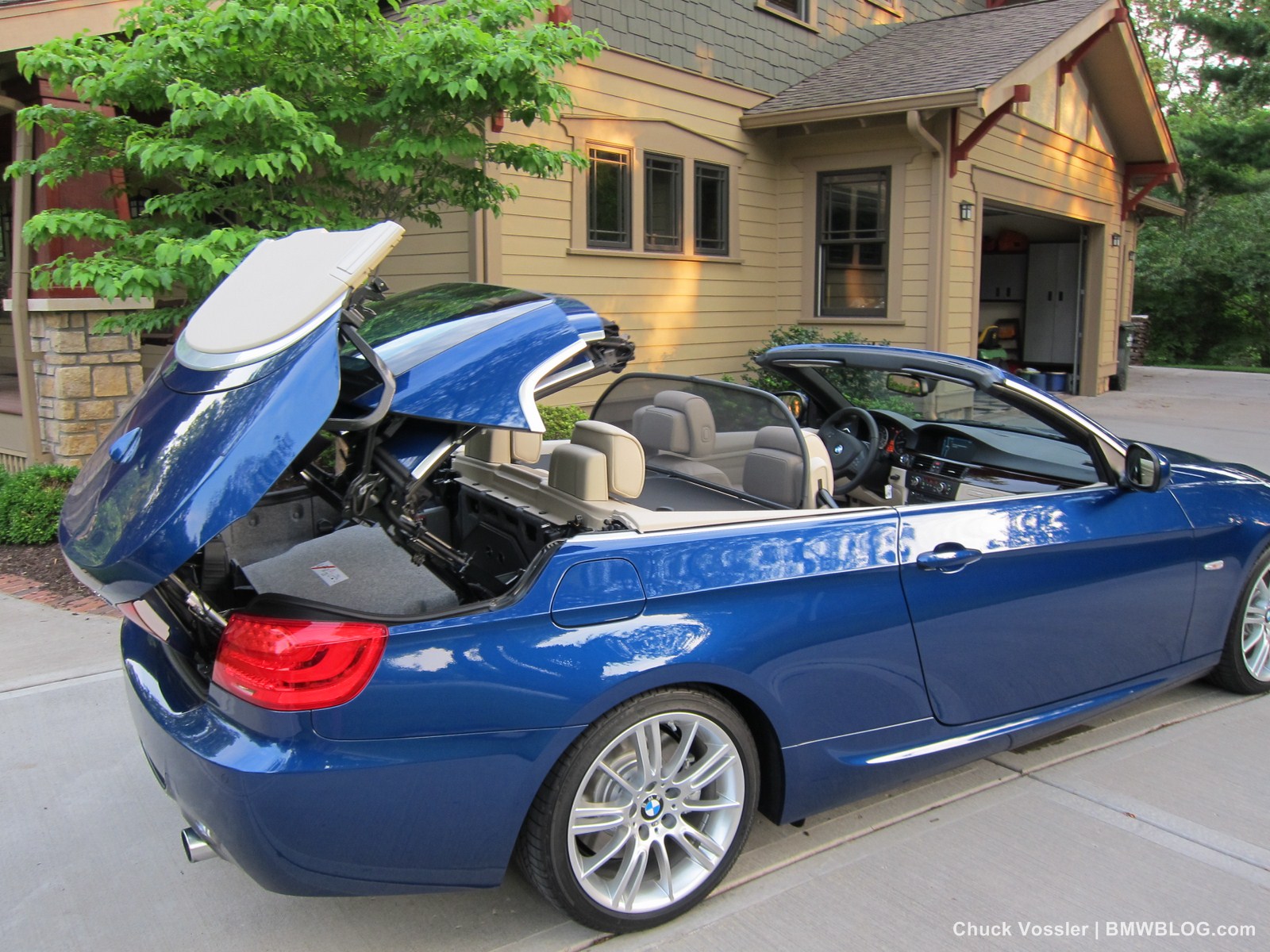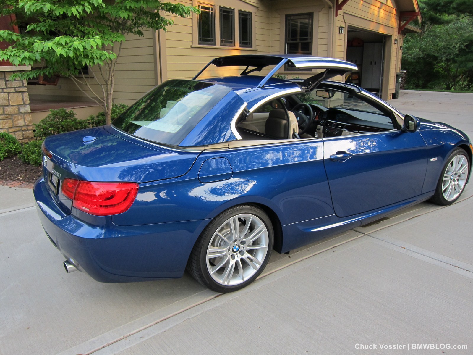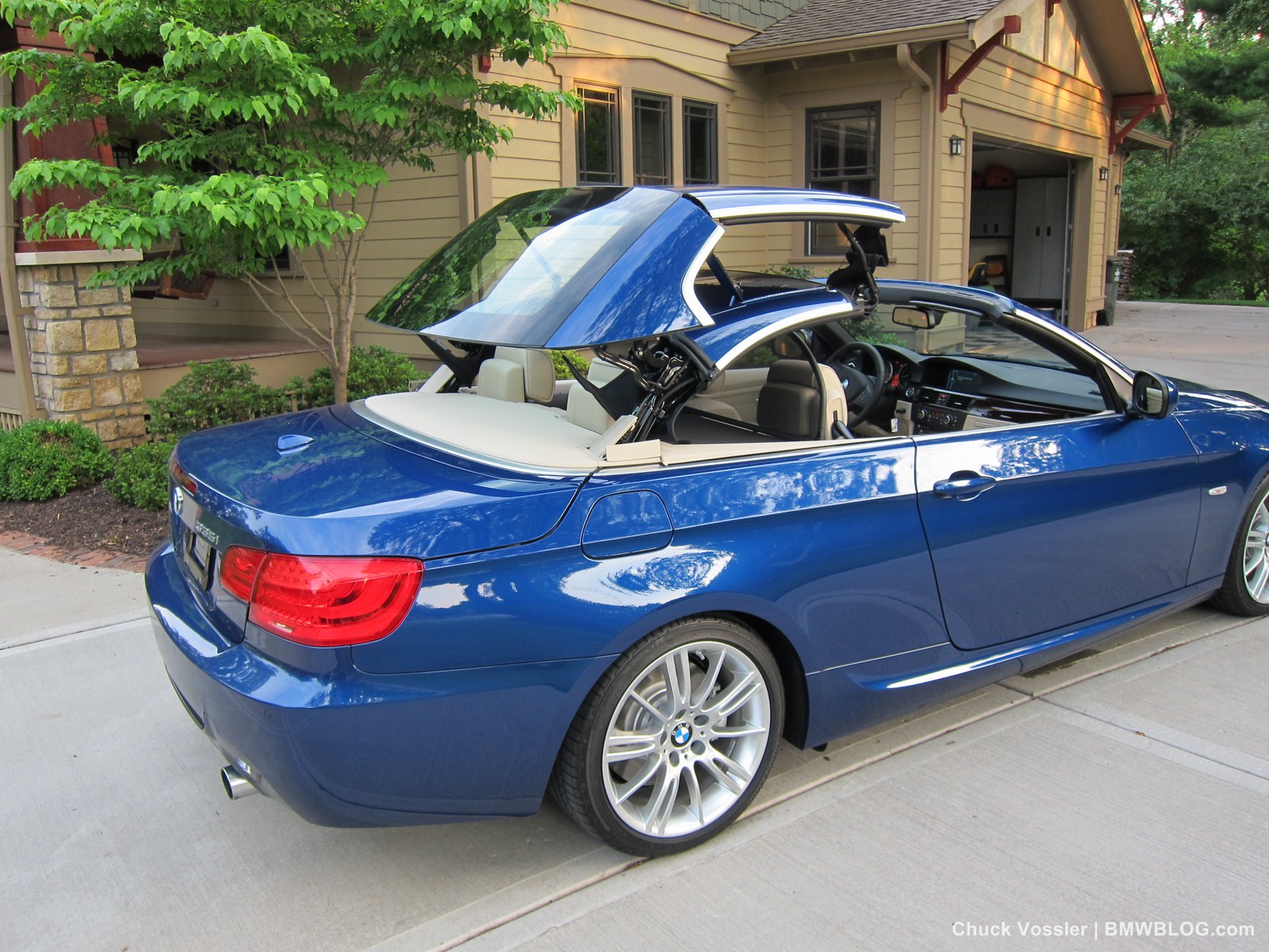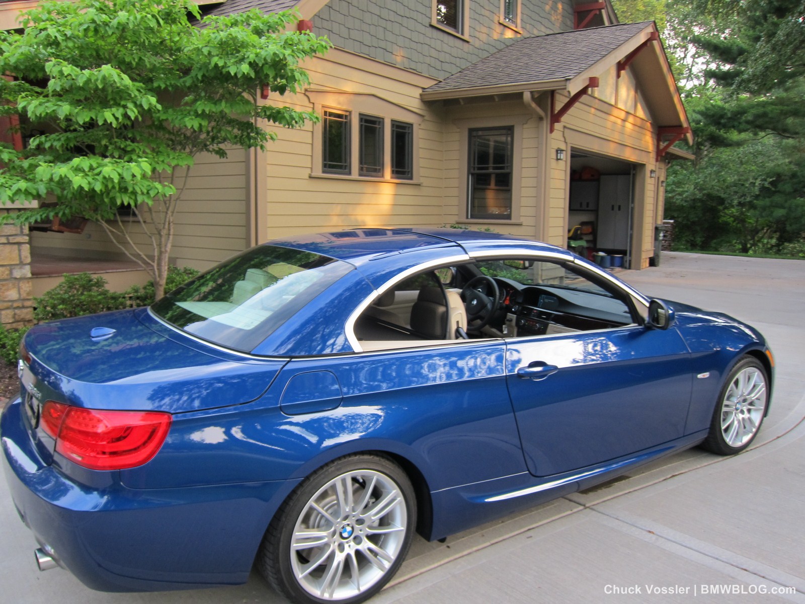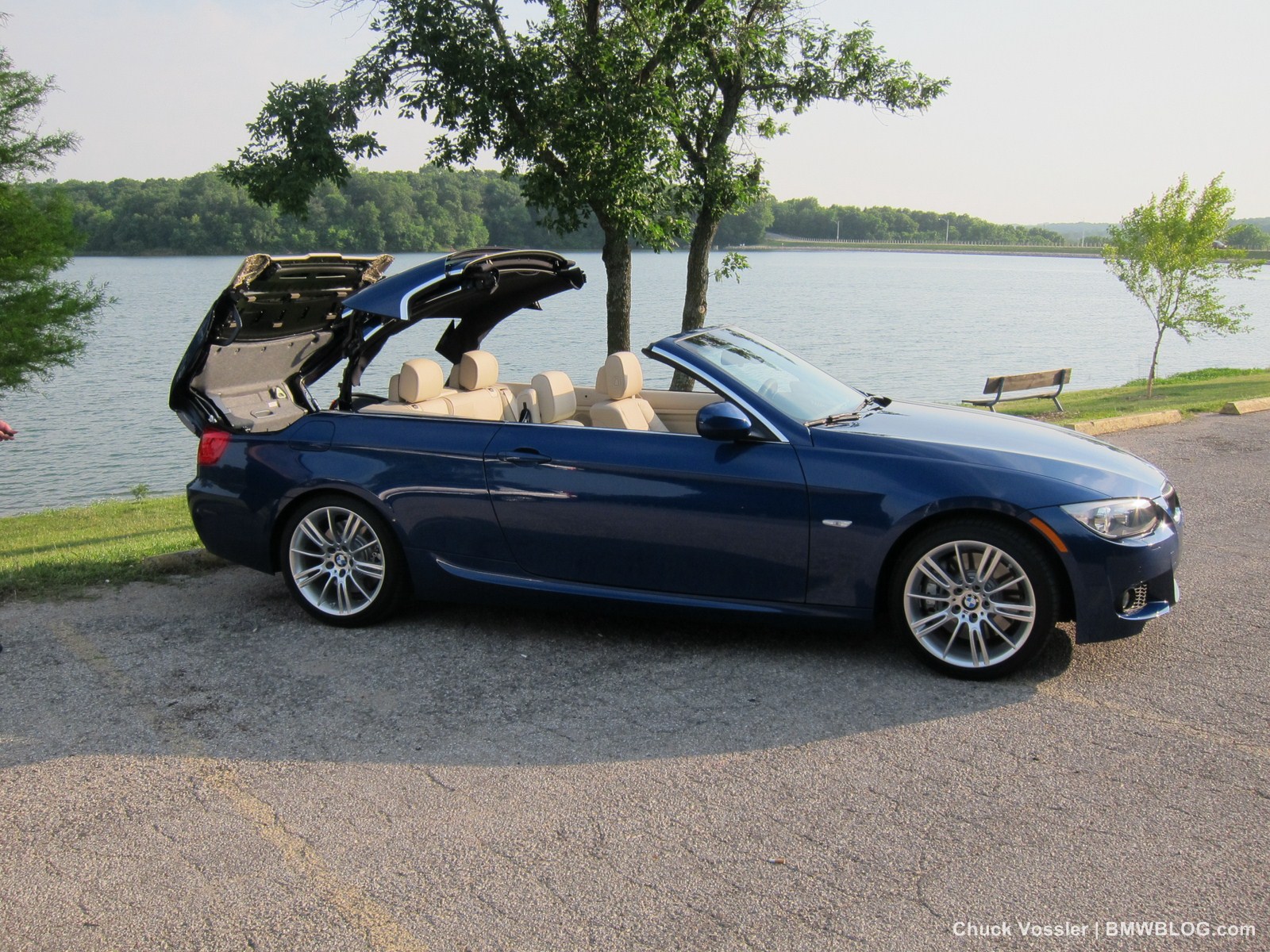 Ah summertime! What better time is there than this to drive a BMW convertible? Sometimes, we in the automotive press, spend too much time talking about the latest and greatest, forgetting about the here and now. This realization dawned on me while taking in the stunning view of the low slung, wide M-Sport package 2012 BMW 335i Convertible, top down in the shimmering sunlight next to the lake in LeMans Blue Metallic with its cream beige Dakota leather.