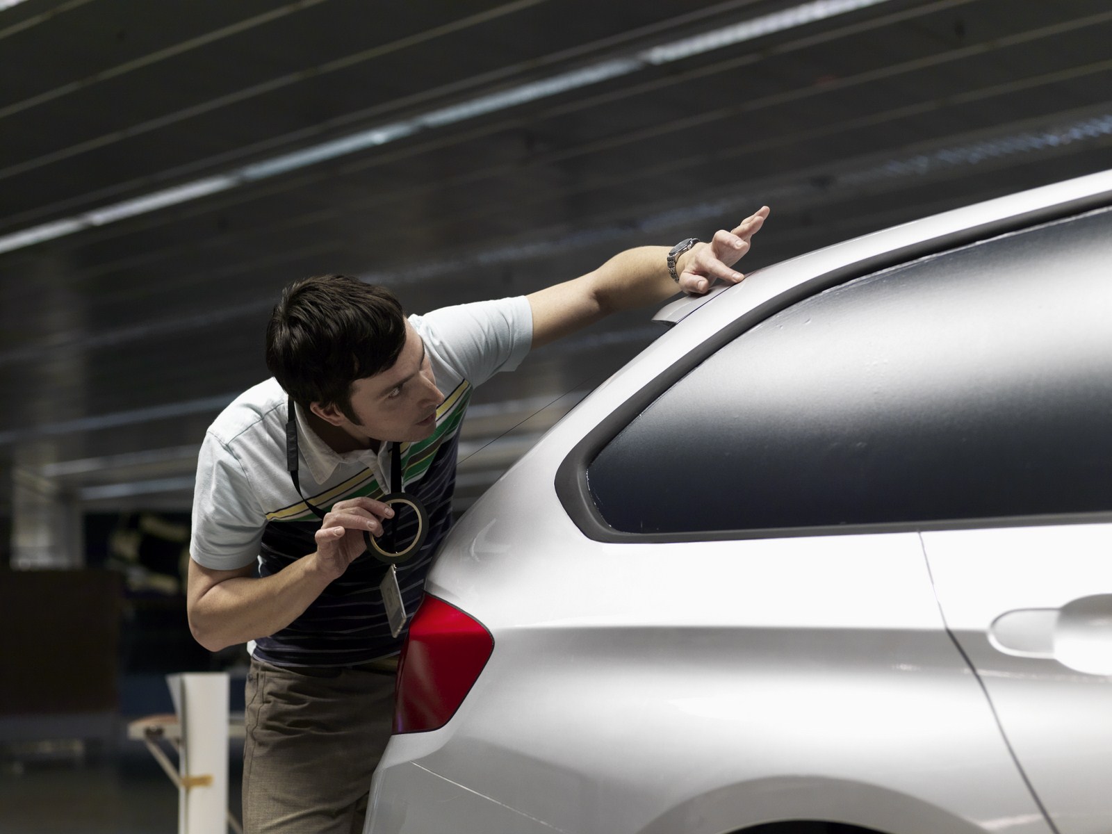 Powerfully taut surfaces with sweeping lines dominate the side view of the BMW 3 Series Sports Wagon, stretching the car visually and lending extra verve to its dynamic stance. The flanks of the car are shaped by an eye-catching double character line running alongside each other. The higher character line emerges out of the low-slung nose and flows over the front wheel with an understated sweep, in a nod to the wagon’s fleetness of foot. The second character line develops lower down behind the front wheel and follows a delicately arching path towards the rear. Together, they reinforce the dynamic wedge shape of the wagon’s flanks. As well as providing a discreet increase in muscularity in the rear section below the character line, these styling cues also create vivid light and shade effects, which draw further attention to the wagon’s wide track.
