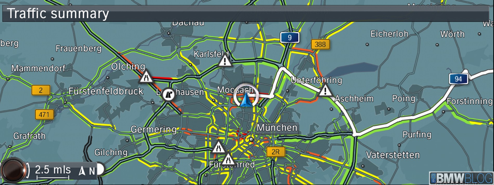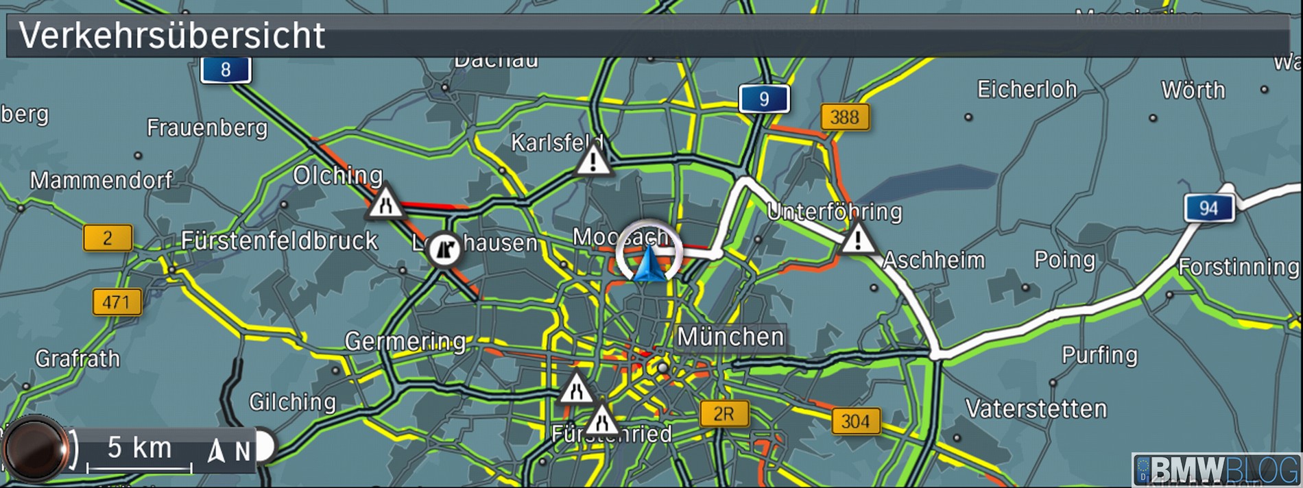 The latest generation of the BMW Navigation system Professional once again employs RTTI technology for calculating routes and diversions accurately and reliably by factoring in the real-time traffic situation for both route guidance and calculation of the arrival time. By using the 3G mobile network and the vehicle’s built-in SIM card, RTTI offers the benefit of faster data transmission combined with more extensive coverage. What’s more, the new system extends beyond motorways and major highways to cover country roads and even a large number of urban routes as well.