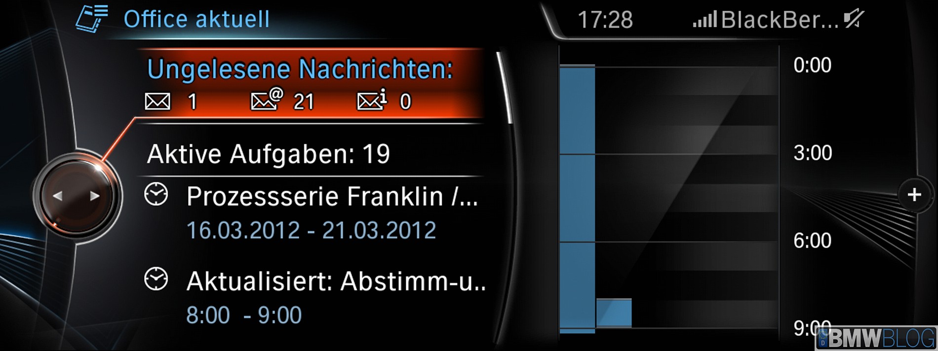 The calendar from an integrated smartphone is now displayed in an enhanced, new-look format. Appointments are visualised in the same way as in popular email programs, while the daily view and calendar navigation have been further simplified, too.