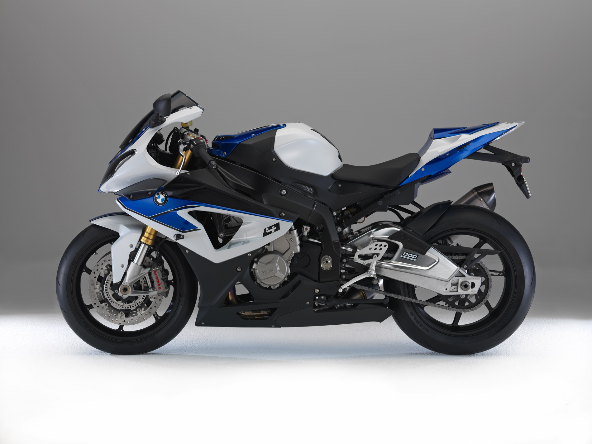 The HP4 uses a rear tyre in the new format 200/55 ZR 17. The Dynamic Traction Control DTC already used in the RR has been optimized for supersports use in the HP4: now the effect of traction control can be adapted in “Slick” mode to changing conditions and the rider’s individual preference while on the move.