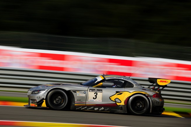 Marc VDS Racing drivers Markus Palttala (FI), Bas Leinders (BE) and Maxime Martin (BE) followed in fourth in the number3 BMW Z4 GT3. The trio led during the early stages and set fast lap times in both dry and wet conditions over the course of the race. When the rain came on Saturday evening, Martin was by far the fastest driver in the field and then set the fastest lap of the race (2:19.758 minutes) on a dry track. Although the three Marc VDS Racing drivers did not ultimately make it onto the podium, they were able to successfully defend the overall lead in the Blancpain Endurance Series. Car number 3 led after six hours of the race and was third at the halfway point, earning the drivers important points in the battle for the title in this hard-fought GT3 championship.