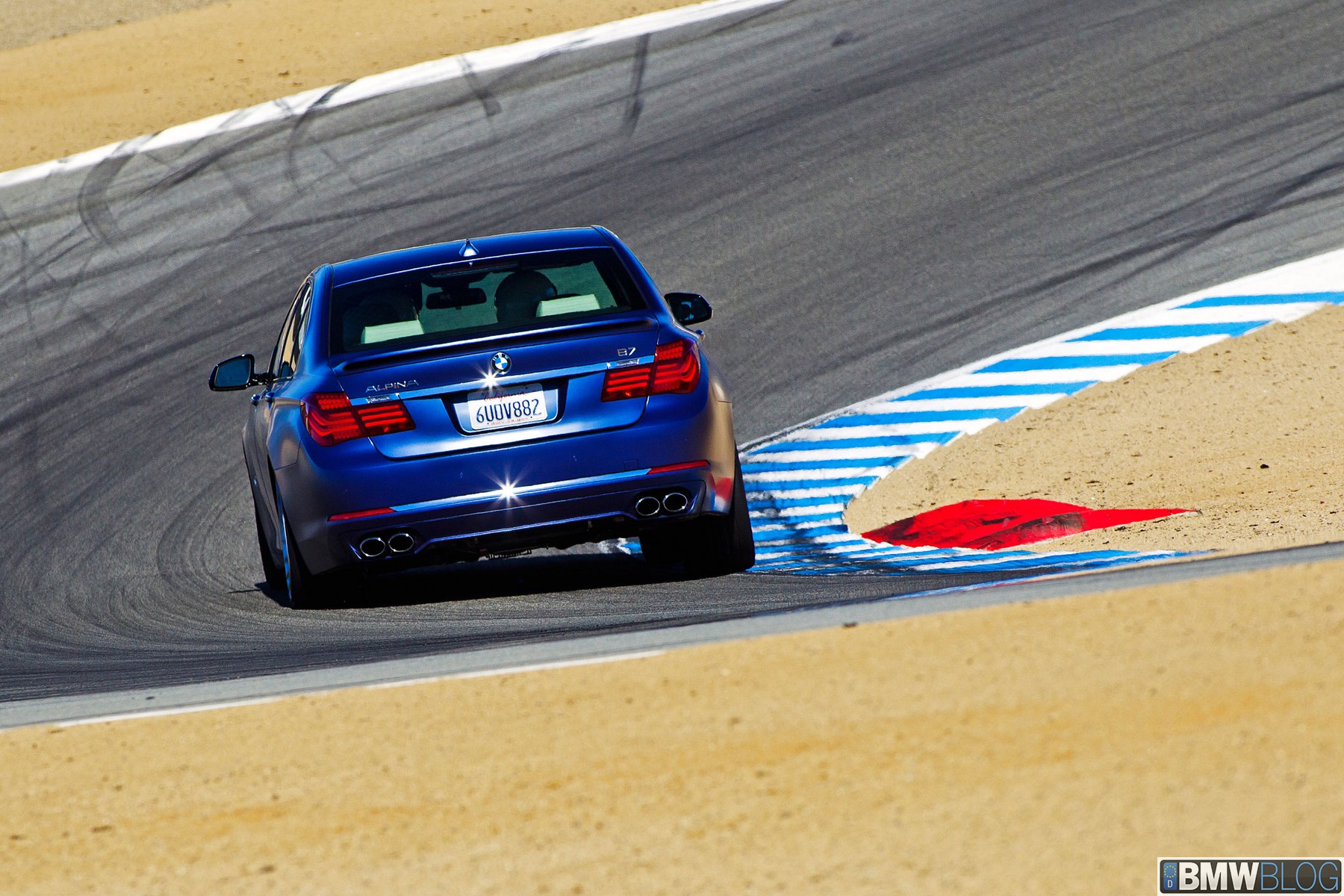 The facelifted 2013 ALPINA B7 made its debut, alongside the 7 Series LCI, at the Laguna Seca race track. In a media event, BMW and ALPINA’s boss Andreas Bovensiepen introduced to U.S. journalists the second generation of the successful BMW ALPINA B7 super-high performance luxury sedan with more performance, fresh design features, and improved efficiency.