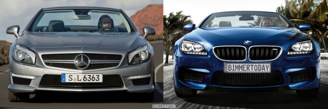 AutoExpress UK compares the new 2013 BMW M6 Convertible against a similar offering from Mercedes-Benz, the SL63 AMG. The M6 is powered by the S53Tu 4.4 liter V8 TwinPower turbocharged engine employing the M division’s patented manifold that evenly spaces out exhaust pulses. With a peak turbo boost of 21.7 psi, the M-built engine produces 560 hp and 500 lb-ft of torque that now is delivered in a flat band between 1500 and 5750 rpm.