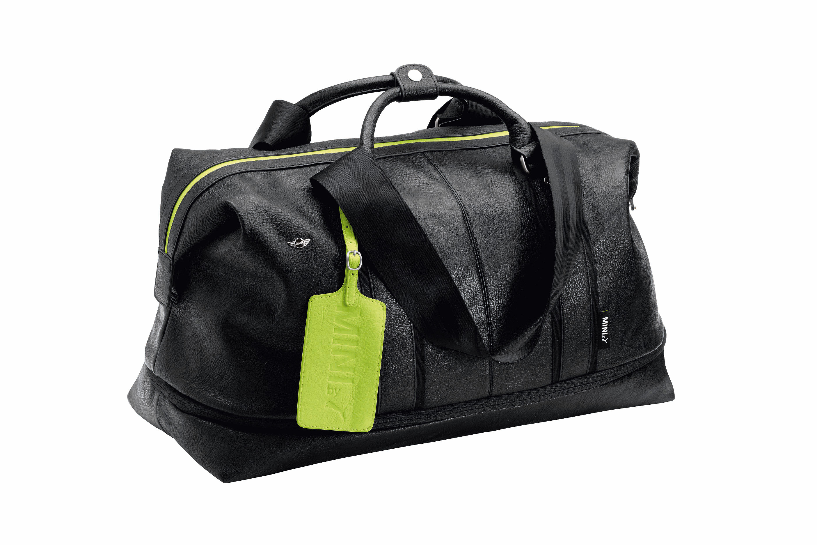 The first MINI by PUMA collection, which will be launched in September, features sporty yet stylish unisex bags and accessories, including larger weekend bags, compact handbags and wallets. The cleverly designed interior compartments and zips make for practical bags with ample storage. The strap and handle designs are inspired by MINI seatbelts. The various models come in black with neon yellow luggage tags. The bags will be complemented by a range of sneakers, which will include different models of low-cut sneakers and chukka sneakers for both men and women. The sporty, lightweight shoes have a narrow last and feature “cool Britannia” design details. The collection’s colour palette focuses on black, white and green. The MINI by PUMA collection will also feature a variety of fashionable clothing ranging from T-shirts to parkas.