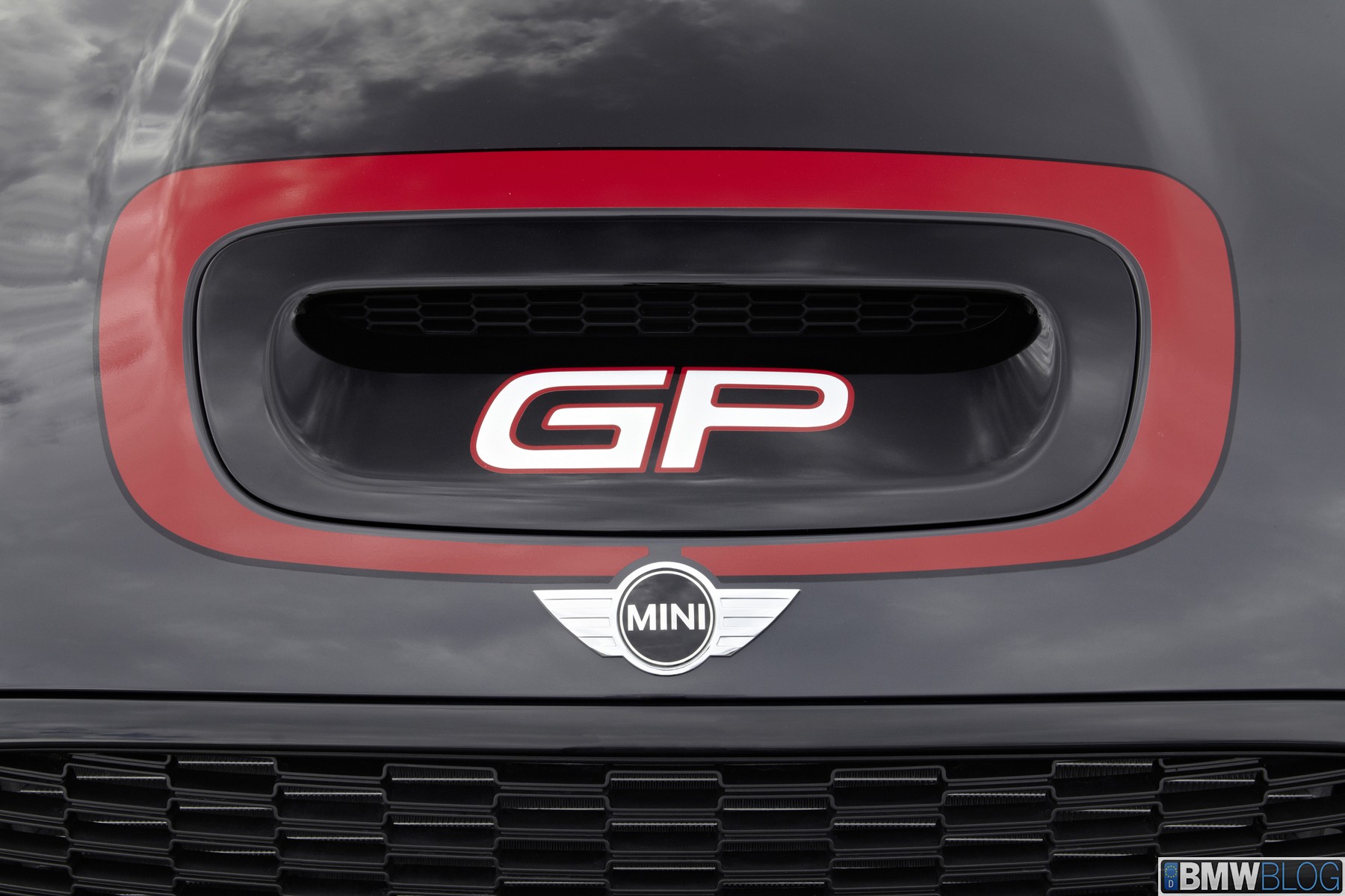 With its conspicuous and distinctive appearance, the MINI John Cooper Works GP is upfront about its performance credentials right from the word go. The body is painted in the exclusive colour Thunder Grey metallic, with red for the edging round the bonnet opening as well as for the exterior mirror caps and the side air intakes in the front apron. John Cooper Works insignia appear on the lower air intake and the tailgate. The final proof of identity is provided by “GP”-badged side stripes running between the front and rear wheel arches. The standard specification of the MINI John Cooper Works GP includes xenon headlights in black shells, foglamps, sun protection glazing, air conditioning, DSC with special GP mode, and a Sport button. The aerodynamic body parts like the large front and rear aprons, striking side sills and model-specific roof spoiler not only add to the eye-catching appearance but also play an important part in controlling air flow. The rear diffusor, together with the underside panelling and the roof-edge spoiler, reduce lift forces at the rear axle by 90 per cent, for impeccable handling control even under high-speed cornering and when driving at or near the limit.