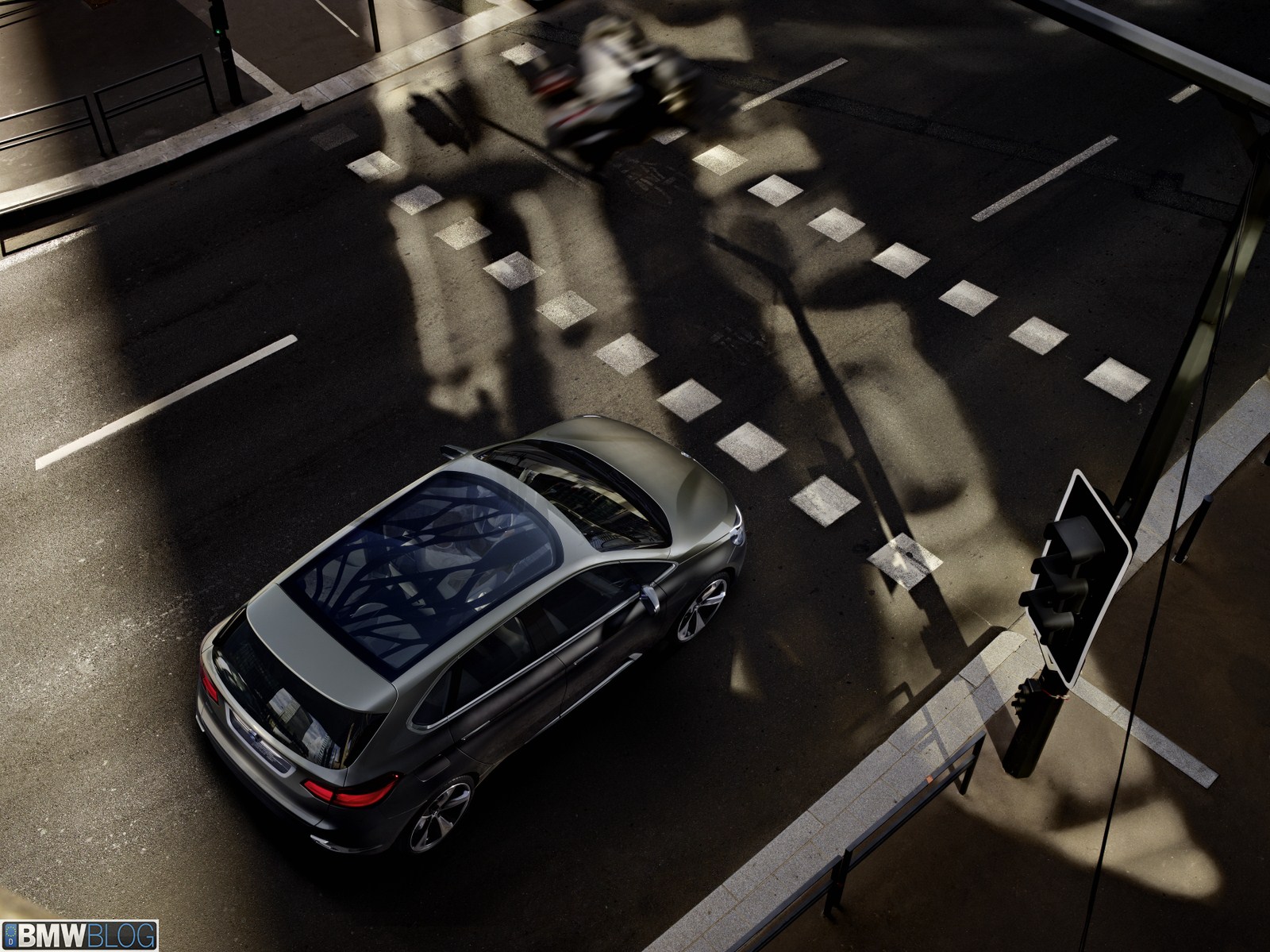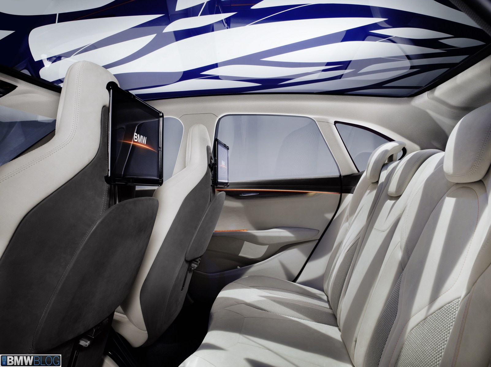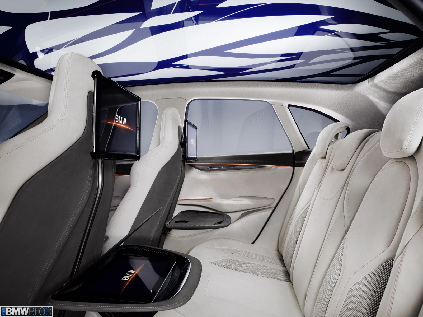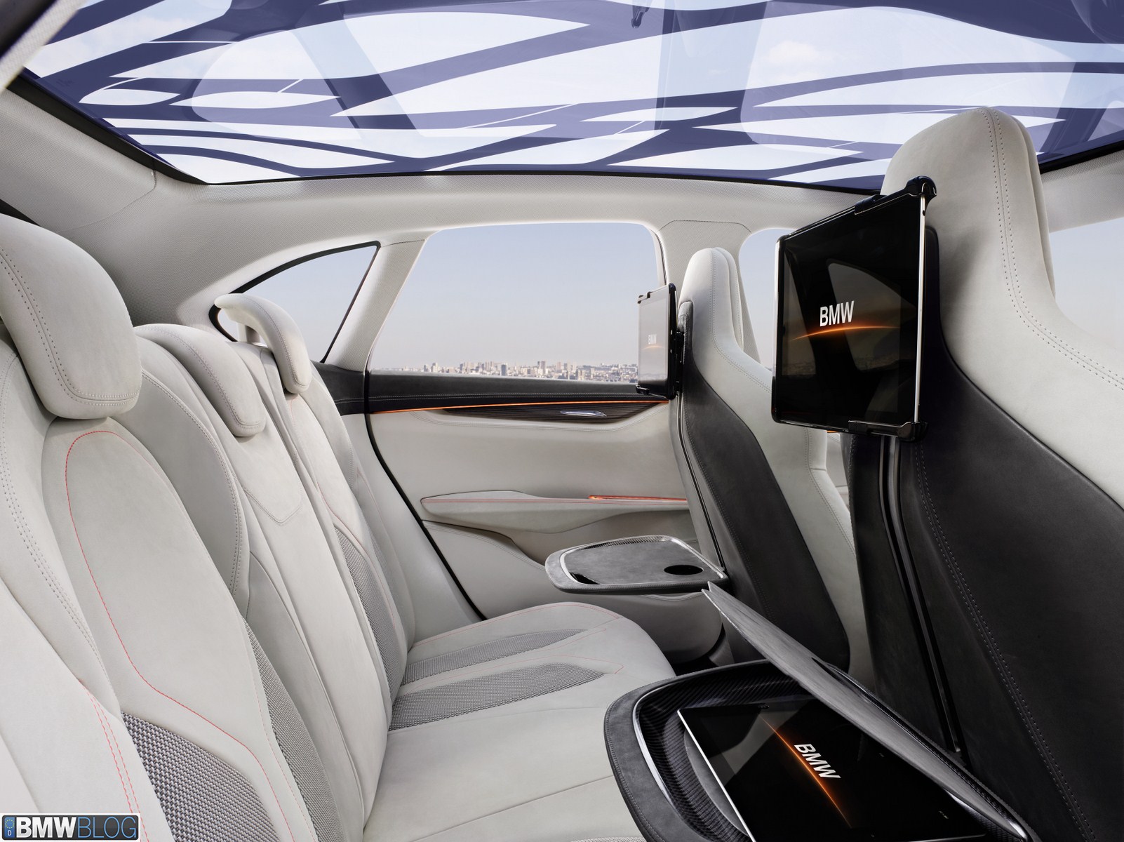 An innovative panorama sunroof creates a unique ambience, extending across the entire roof surface of the BMW Concept Active Tourer. The composite glass roof with innovative Suspended Particle Device (SPD) technology means that the desired brightness or temperature effect can be created at the press of an electric button – either being darkened to the level of powerful sunglasses or raised to crystal clear brightness. Occupants can achieve a special lighting effect by manually adding a large-area leaf structure design to the glass roof. Electrical impulses cause the molecular structure of the glass to change at continuously varying levels between light and dark according to preference. The play of light and shadow thus created highlights the sense of space, thereby generating a pleasantly atmospheric lighting effect on all seats.