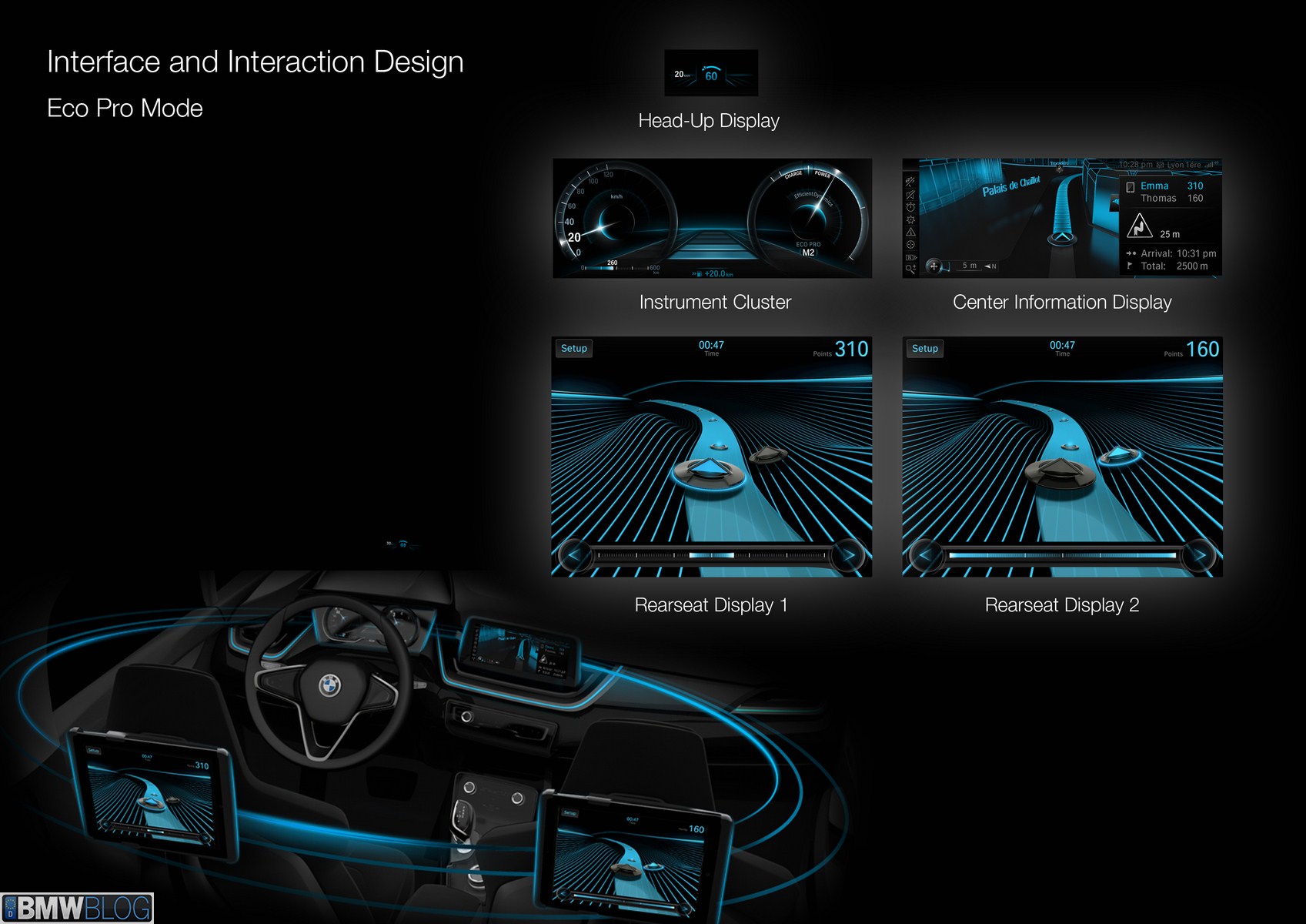 The aim of the game is to collect as many points as possible along a virtual route and record the most efficient driving style. The driver can directly influence the level of difficulty. Anticipatory driving simplifies the game, while a sporty driving style creates a winding and more difficult virtual route in the game. Only perfect interaction between a fuel-efficient driver and a skilful player at the rear can maximise the point score and achieve a podium position in the BMW games universe.