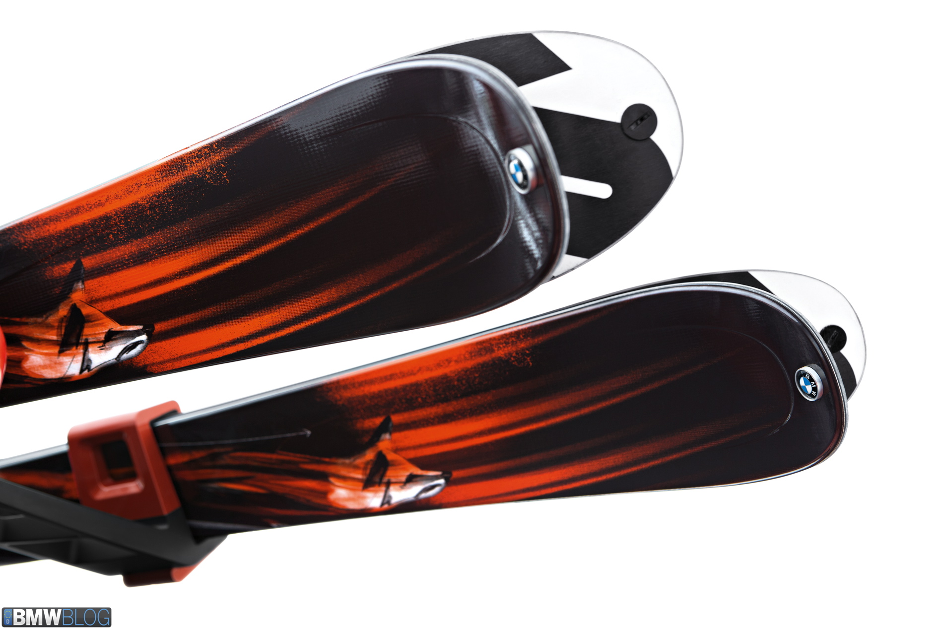 The unique roof structure specially developed for the concept car is made from milled aluminum. Its broad functionality is reflected in an asymmetric structure: two luggage boxes and a ski carrier are positioned alongside one another. The ski carrier, which can be found on the front passenger side of the car, has an innovative retaining mechanism, while the skis are held at an angle to make their distinctive surface design particularly visible. Designed exclusively for the BMW Concept K2 Powder Ride, the skis also feature the fox graphic, as well as a color scheme inspired by wood, brushed aluminum and carbon surfaces. Its White and Valencia Orange running surfaces display the brand logos of BMW and K2 on either side of a broadly spread X.