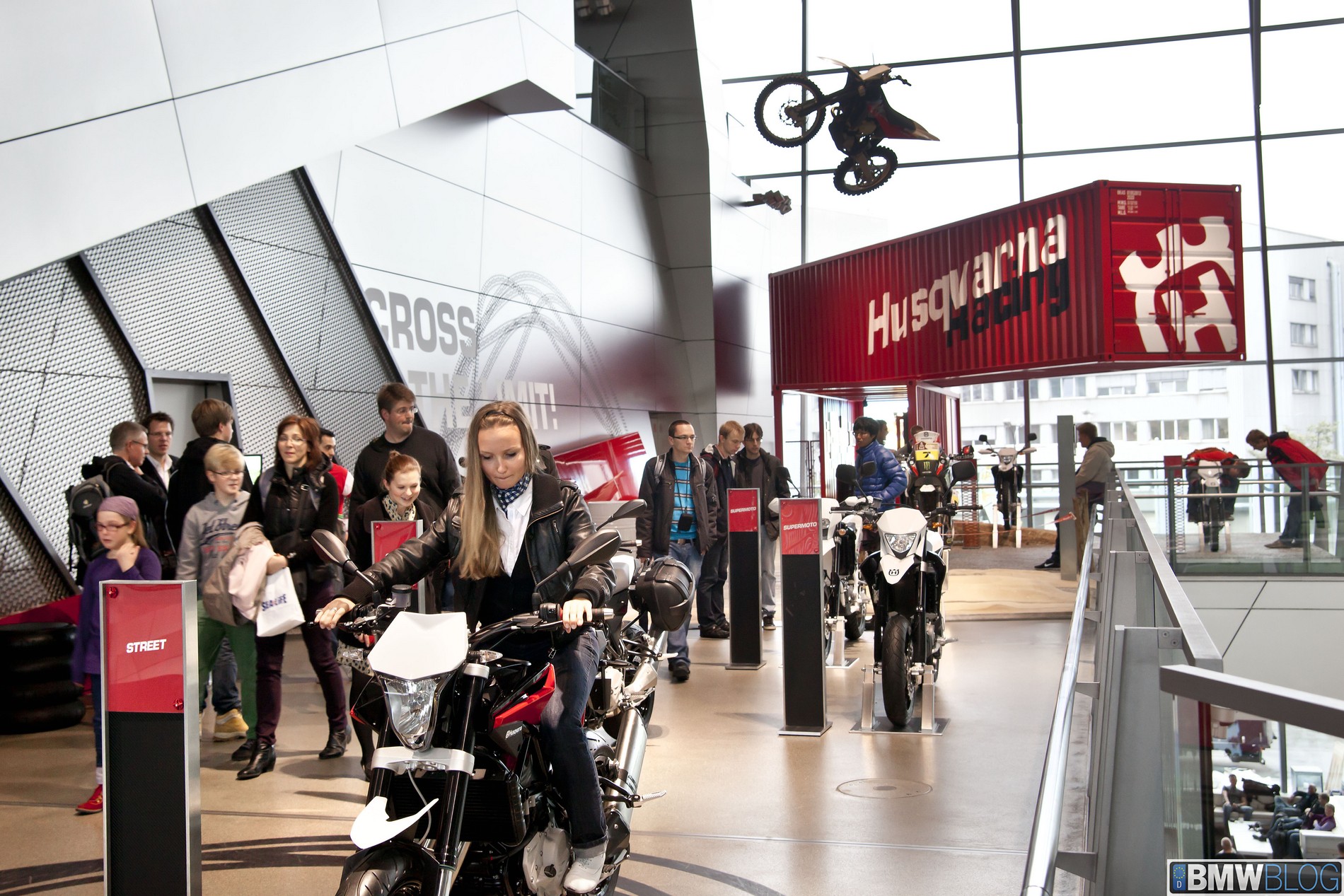 Surprising and unconventional ideas allow the visitor to experience all aspects of the MINI brand in a fun, interactive way. For example, an oversized iPhone running a simulation of the MINI Connected app demonstrates individual functions. In the MINI Lounge, visitors can post a picture of themselves on the photo wall for posterity. The Rolls-Royce presentation is stylish and modern: Films and exhibits highlight the countless hours of meticulous handwork that go into every Rolls-Royce. One of the Rolls-Royce cars is always open to visitors. Anyone who wishes to can sit inside a Rolls-Royce – touch it, see it, smell it, savour it. The BMW Motorrad area features more than just motorcycles. The Biker’s Lodge serves as a platform for the unique motorcycle community, and provides a casual atmosphere for sharing stories and recollections about travels, routes and tours. The Husqvarna brand is staged in a way that appears to defy the laws of gravity: A motorbike is suspended in the air above the visitors’ heads, and even the red Husqvarna container, positioned above the whole brand area in the upper level of the BMW Welt, appears to be free of gravity.