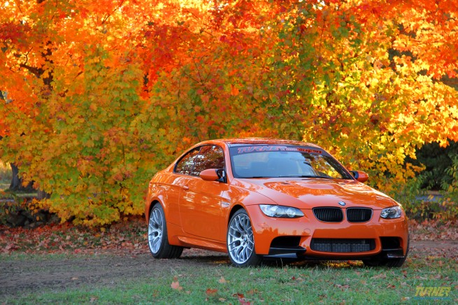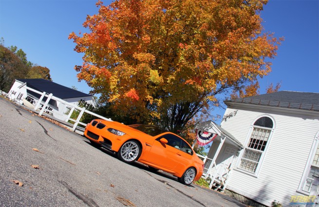 Fantastic, just like any other brand new M3 would be. We absolutely love the color and think it really brings out the aggressive yet subtle styling of the E92 M3. Getting behind the wheel of this brightly colored M3 instantly brings an ear to ear smile to your face. The sound of that 4 liter V8 just does not ever get old especially when enhanced with the BMW Performance Inconel Exhaust system (weights 40% less than stock). The M Performance Alcantara covered steering wheel gives you the “track car” feel which enhances the driving experience and sound of that M powered V8. The overall attitude of the car forces the urge to turn the radio off and put the windows down to get as much of the sound and feel as possible. Drop the 6 speed transmission down a gear and your off.