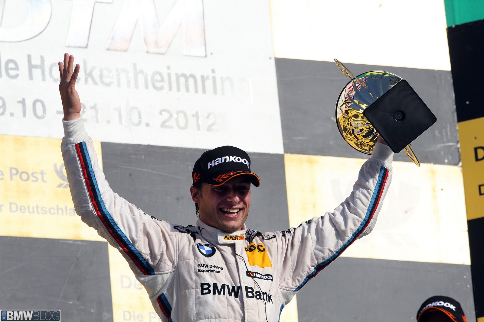 Hockenheim (DE), 21st October 2012. A dream come true: A fourth win of the season at the wheel of the BMW Bank M3 DTM in the tenth and final DTM race of the year saw Bruno Spengler (CA) win the drivers’ title and cap an outstanding comeback season for BMW Motorsport. BMW also won the manufacturers’ title in Hockenheim (DE), while BMW Team Schnitzer ended the season at the top of the team standings after a dramatic finale. Augusto Farfus (BR), who started from pole position, came home in third to finish the season on the podium. Gary Paffett (GB, Mercedes), who was leading the standings coming into the race, crossed the finish line in second.