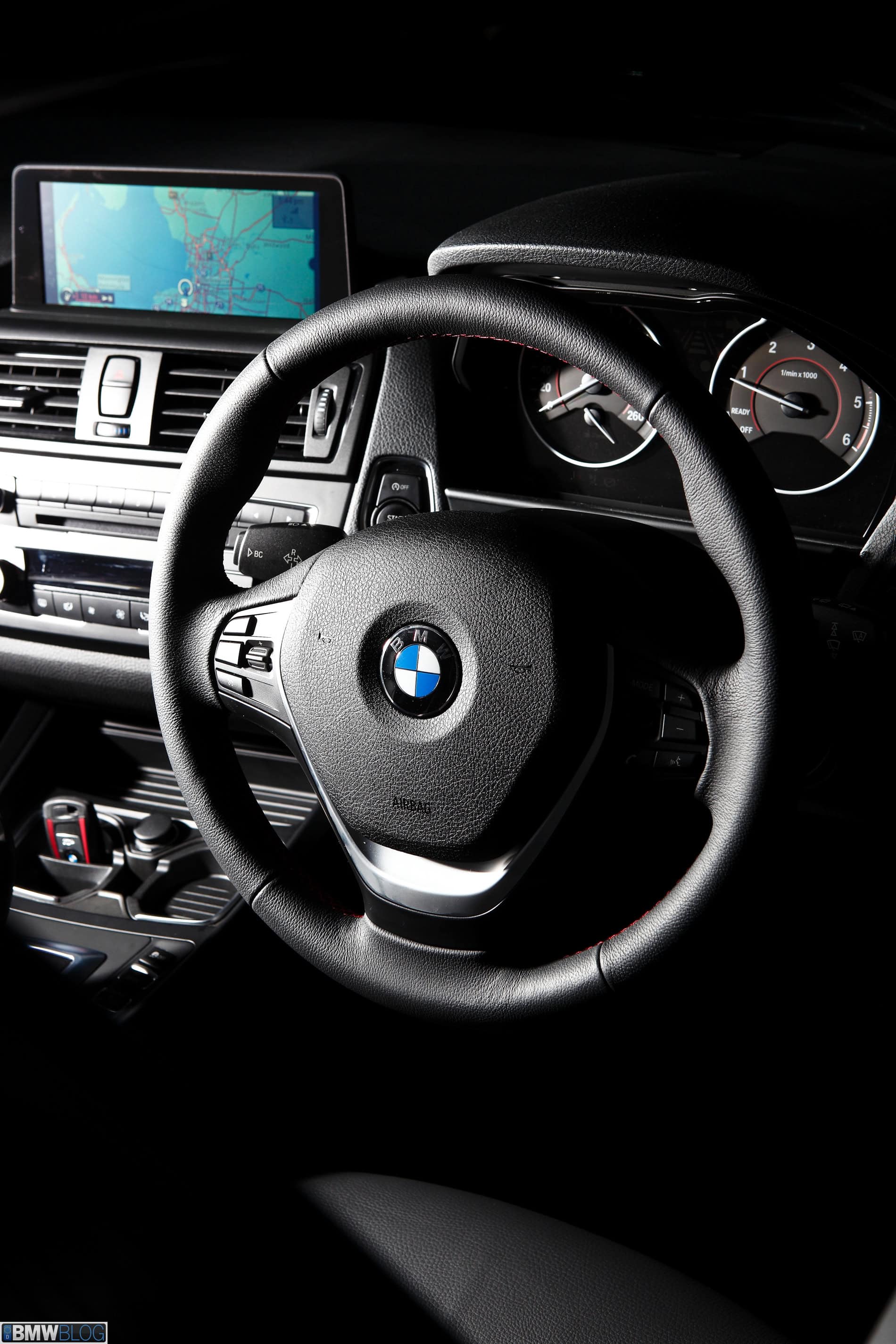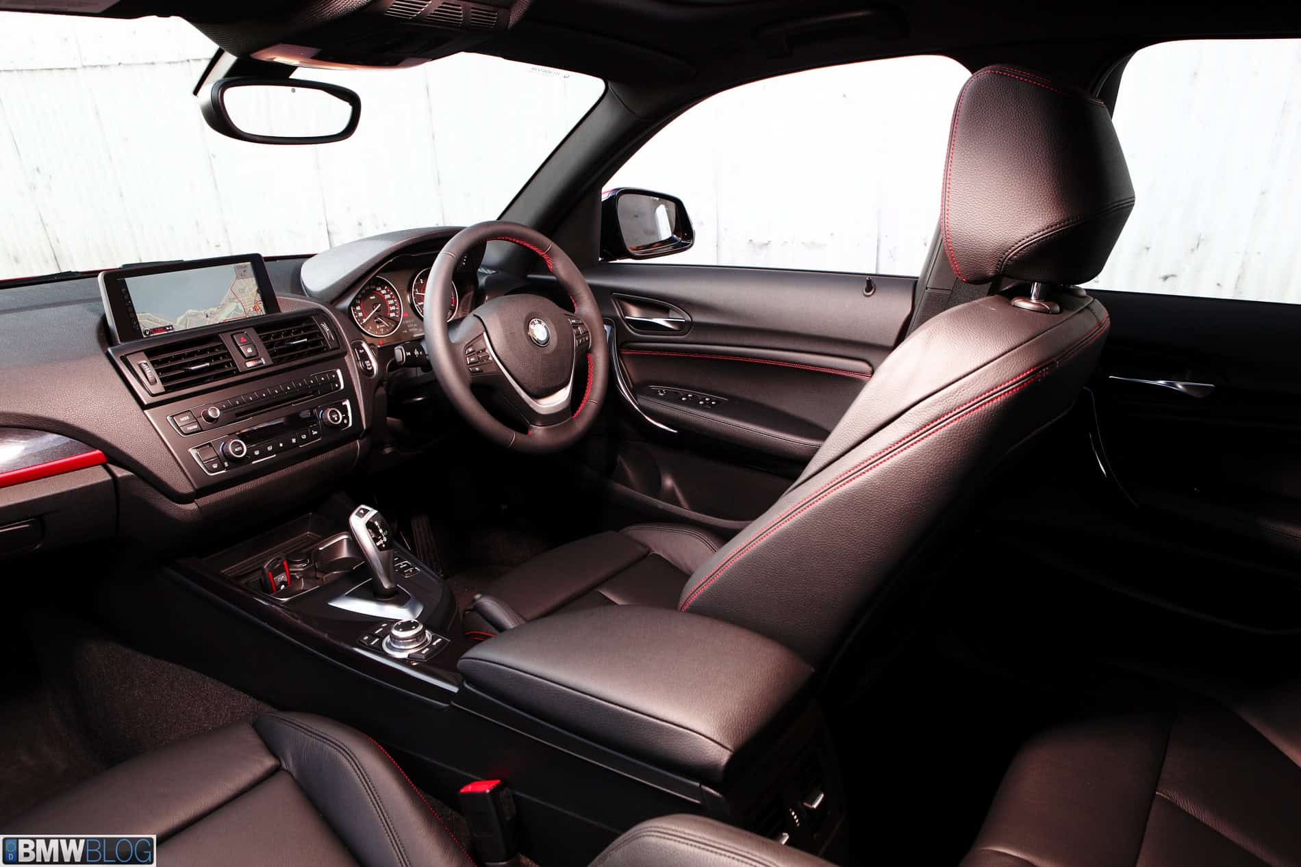 The 118d BMWBLOG tested was a Sport Line which includes sport seats, a thick leather sports steering wheel with red contrast stitching, a red highlighted key fob, high-gloss black interior, door sills and matte coral accent strips. Also unique to the Sport Line, an instrument cluster that can be changed from orange to white. The black interior with silver trim and red highlights add together to make distinctive sporting statement. The exterior Sport Line touches are blacked out kidney grills, high gloss black bumper trim and mirror caps. 16” wheels are standard and 17s are optional, and well worth it.
