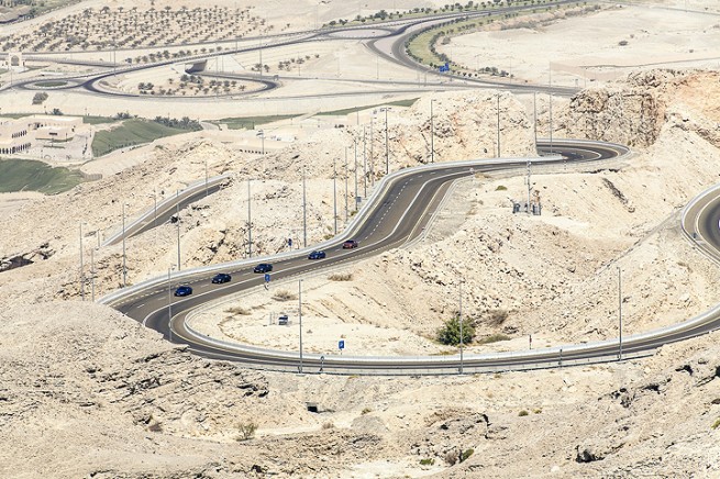 The performance delivered by the BMW M6 made itself felt on a new serpentine leading up the highest mountain in Abu Dhabi, the Jebel Hafeet. There we were doubly rewarded with a gigantic view of the desert and the oasis city of Al Ain.