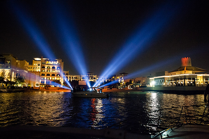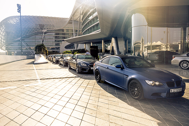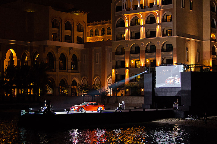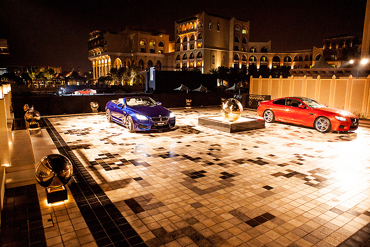 In the evening, we were picked up at the hotel jetty by 600 hp yachts that took us along the coast to Abu Dhabi. After half an hour of skimming over the dark, tranquil sea, we docked at buoys before a platform built directly in the water. The spectacular presentation of the BMW M6 was taking place here.