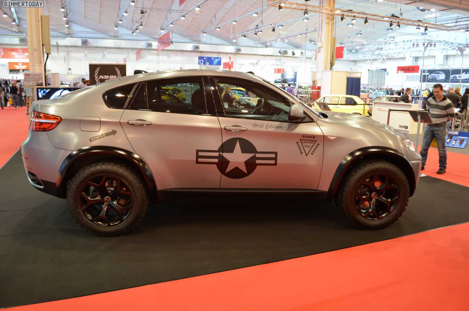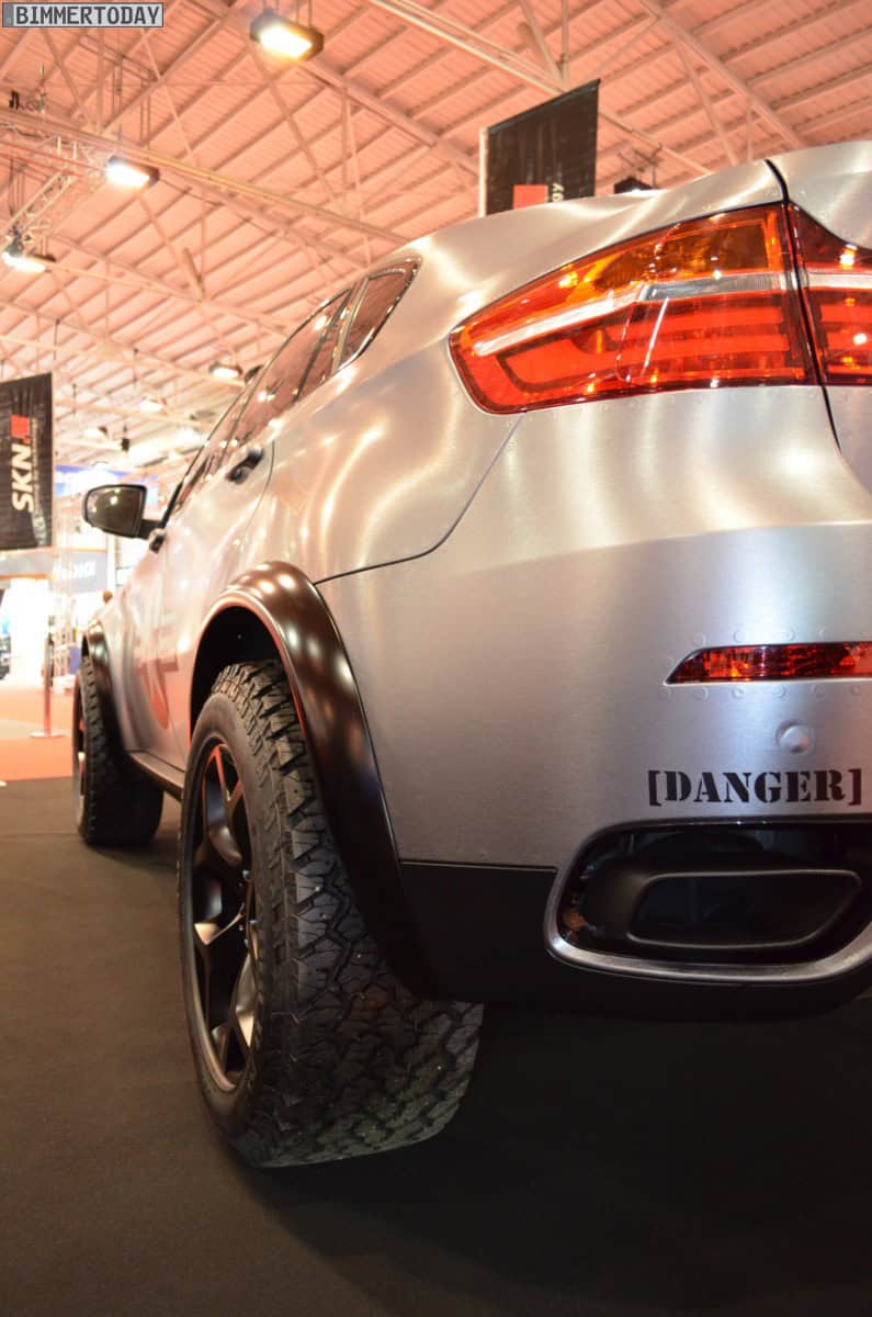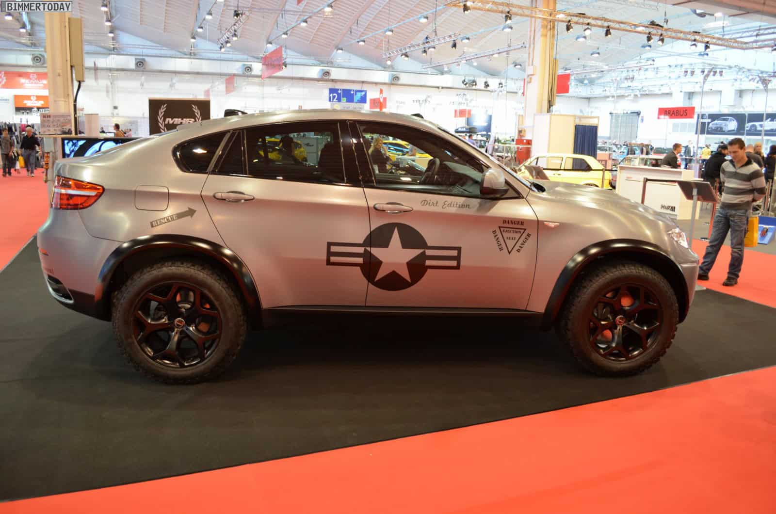 The Dirt Edition is built atop a BMW X6 xDrive50i with a relatively moderate increase in performance from 407 to 456 hp and a more flashier special vinyl wrap. The car also gets a widebody kit and the bonnet from the BMW ActiveHybrid X6. The special vinyl gives the car a military look.