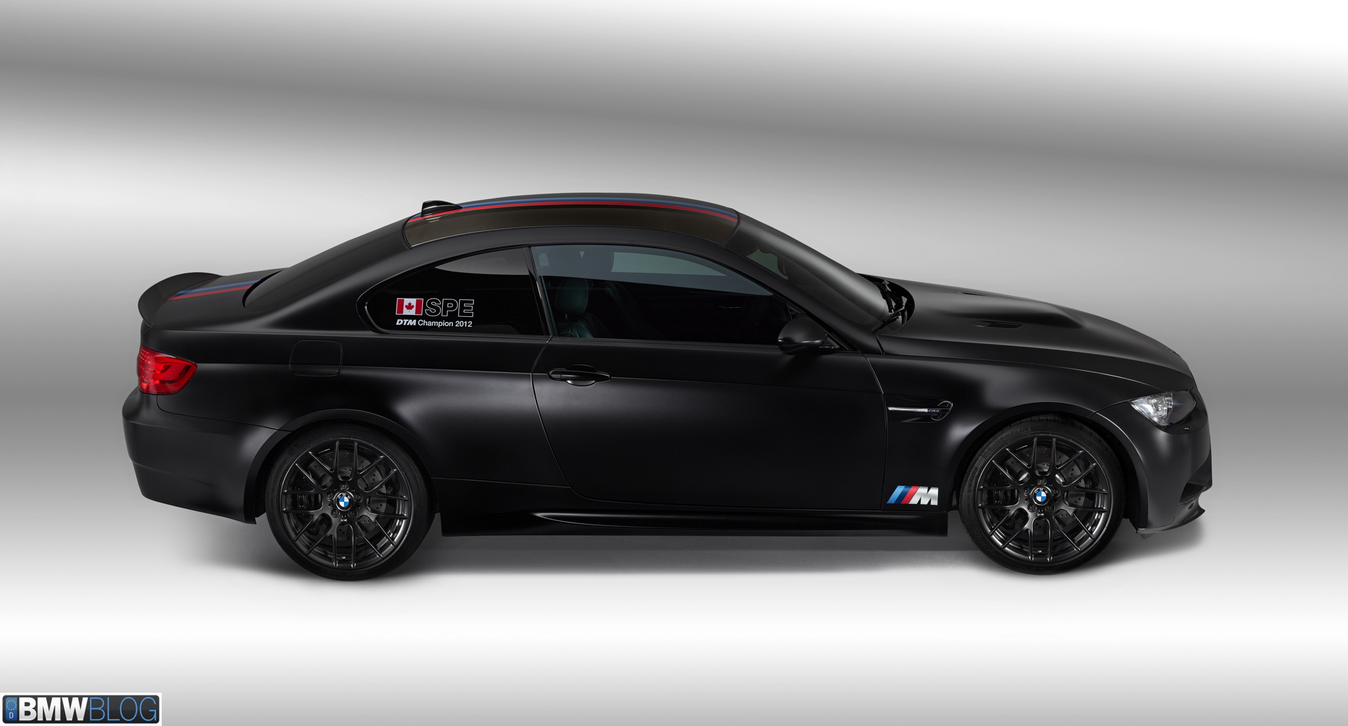 BMW M GmbH is celebrating this success with the unveiling of the BMW M3 DTM Champion Edition. Mimicking the looks of Spengler’s racing car, this special-edition model is available exclusively in Frozen Black metallic, while the carbon flaps and gurney, various dark chrome elements, matt black wheels and sections of the race car’s livery also betray its close links with the triumphant BMW M3 DTM. The theme is continued by the BMW M stripe design over the CFRP roof and boot lid, BMW M logo to the rear of the front wheel arches and decals in the rear side windows.