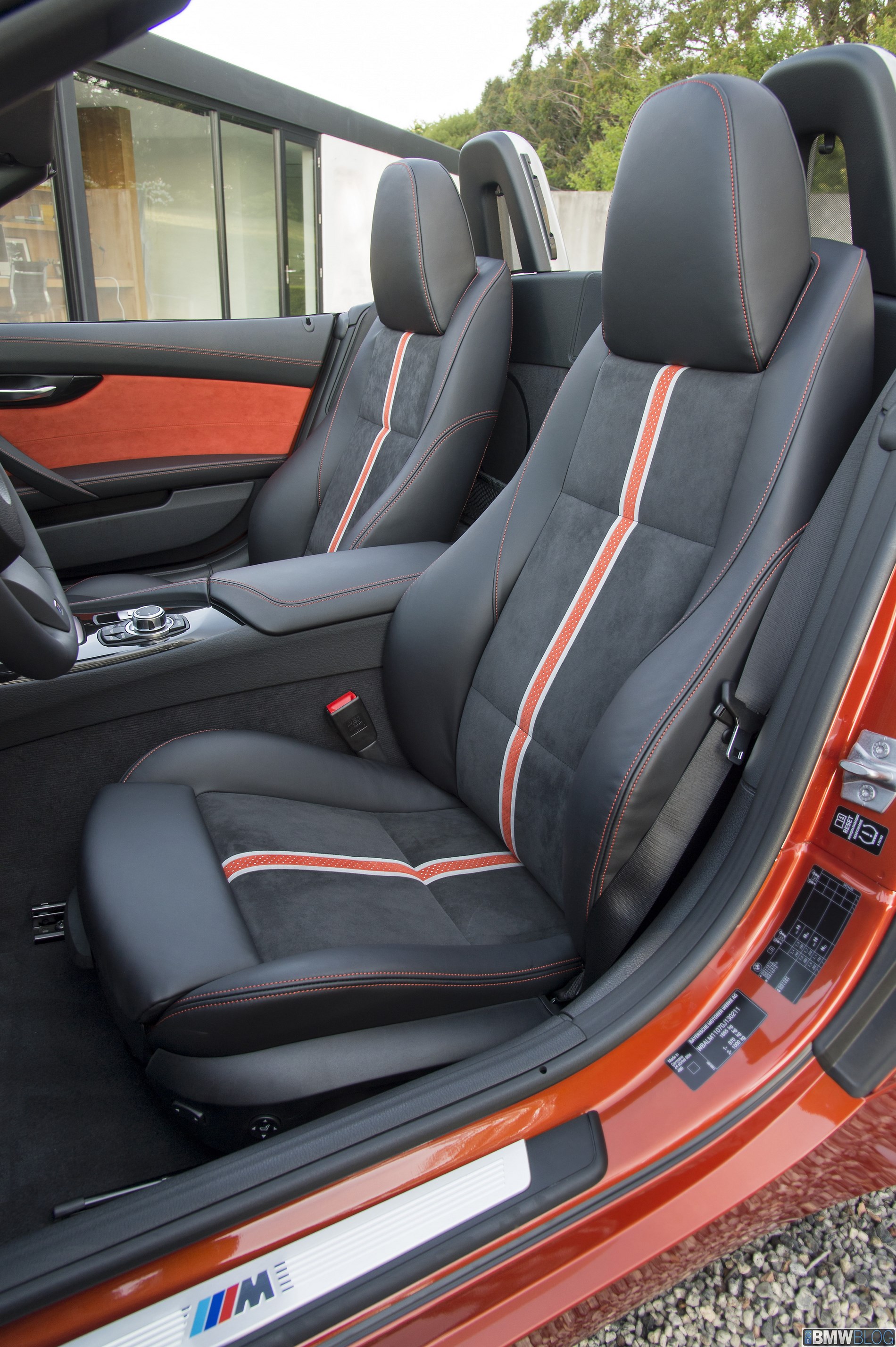 A total of 11 external paint finishes are available for the new BMW Z4, including the new Mineral Grey metallic, Glacier Silver metallic and Valencia Orange metallic, which can only be ordered together with the Hyper Orange package. This new aesthetic/design package lends the Roadster a lively aura; the interior, for example, boasts an energy-charged contrast of black and orange. The bespoke Alcantara door panel trim, like the lower section of the instrument panel, comes in orange. The black leather seats have contrast stitching in Valencia Orange and an accent stripe running down the central section of the backrests and seat cushions. This stripe is likewise orange and is flanked by two thin white lines. The door panel trim and lower section of the instrument panel can also be specified in black as an option. Another exclusive element of the Hyper Orange package is the metal weave trim strip, which can be combined with further decorative elements in high-gloss black for the door openers and the gearshift or selector lever. This new Design package replaces the previously available Citrus Yellow Package and is also available in combination with other exterior paint colors as an option.