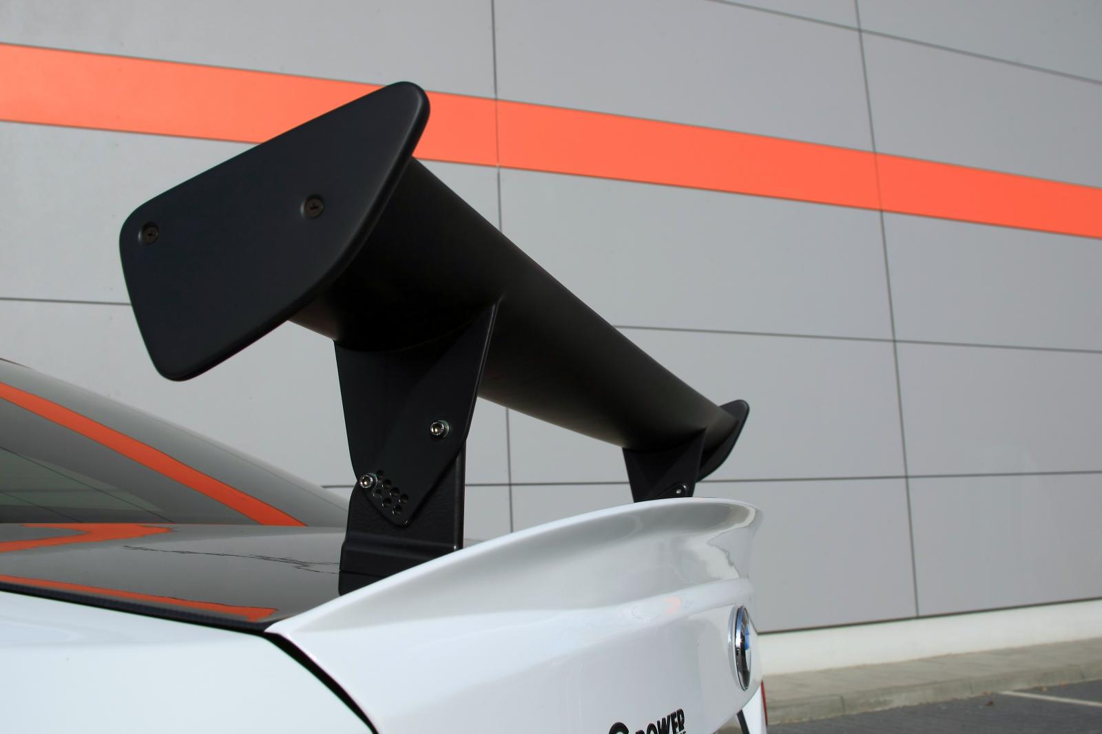 The G-POWER aerodynamic program “RS”, made completely of Carbon fibre, not only reduces the vehicle weight, but also increases the aerodynamic downforce. To be specific, the Carbon front spoiler generates more downforce on the front axle, while the Carbon fibre boot lid incl. tear-off edge increases the downforce on the rear axle. Additional downforce for the rear axle can be generated by a 3-piece and 4-times adjustable Carbon rear wing that can be altered for racing or street purpose. Optionally the G-POWER Carbon boot lit can be fitted with the factory rear wing from the BMW M3 GTS.