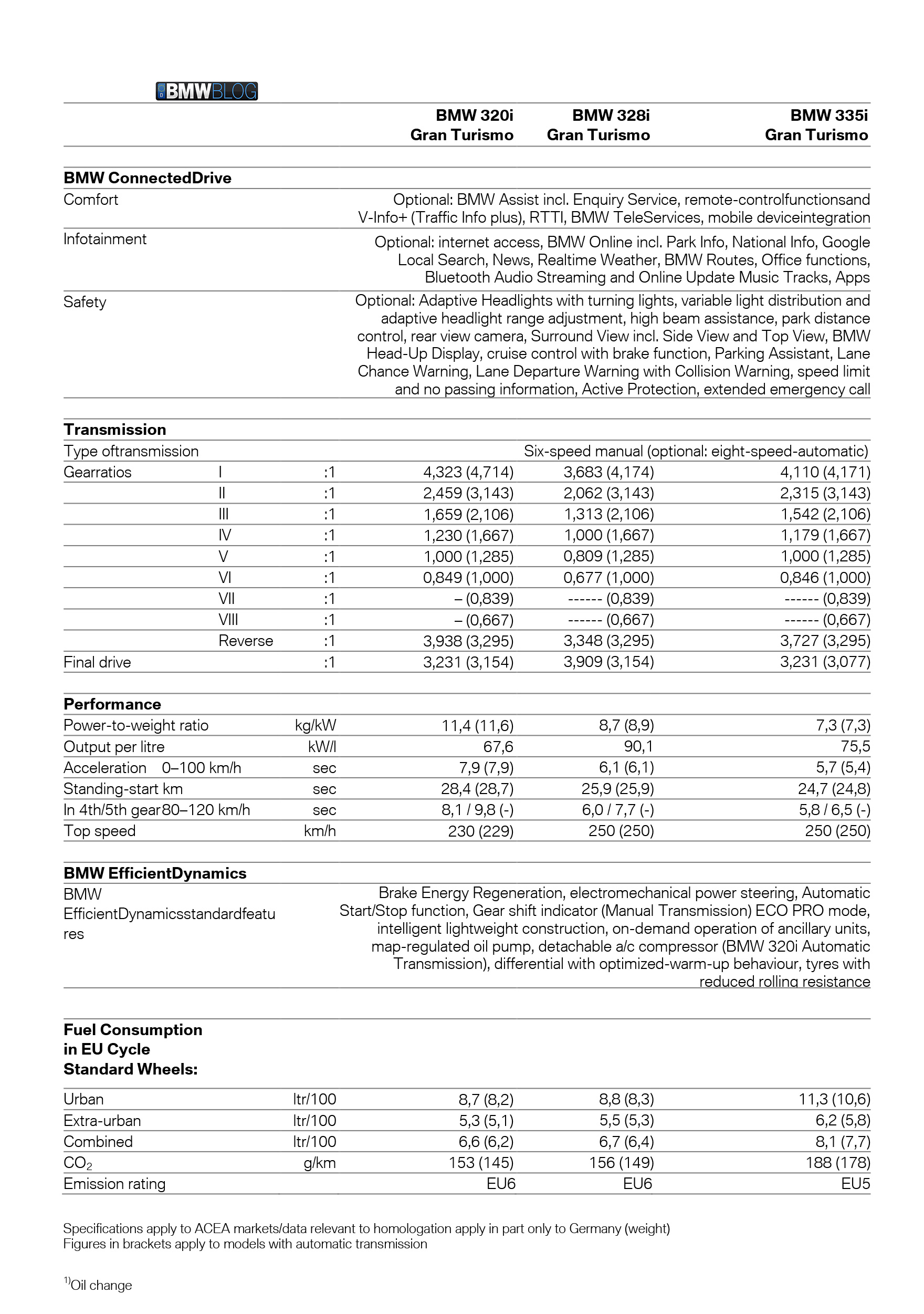 - xDrive variants of the BMW 320i, 325d, 328i, 335i and 320d Gran Turismo