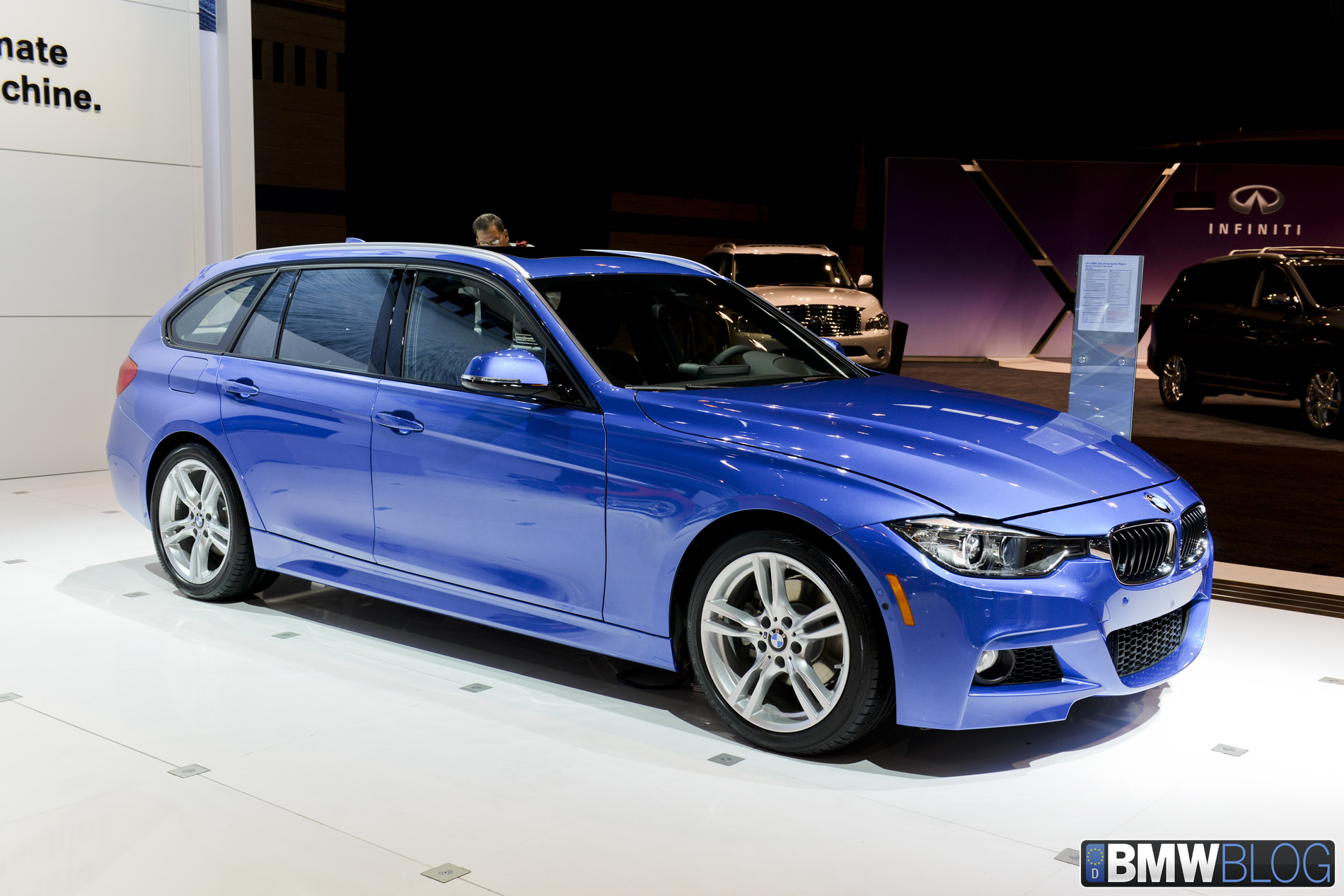 An Estoril Blue 3 Series Sports Wagon brings some color to the BMW exhibit at the 2013 Chicago Auto Show. The BMW 3 Series Touring, in its F3x designation, comes back to the United States with two models: the 328i xDrive and 328d xDrive.