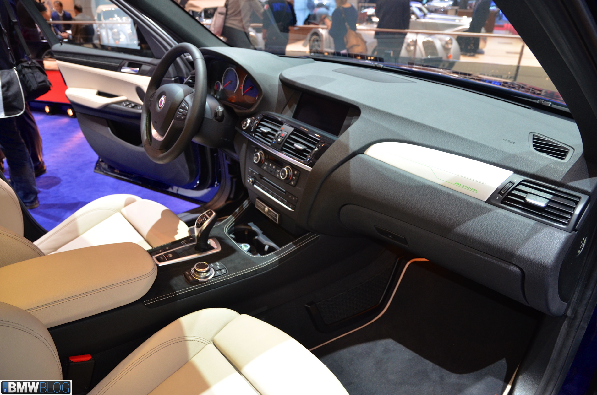 Inside, the ALPINA sport steering wheel with blue/green stitching is present, and two-tone color sport seats. Other enhancements include door sills, floor mats, gear indicator and a digital speed read-out.