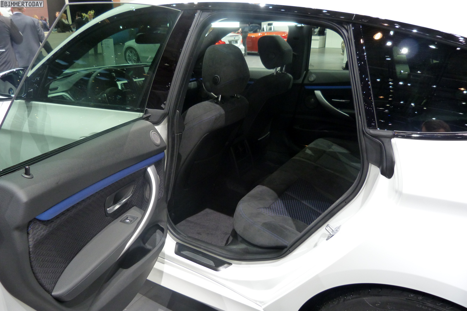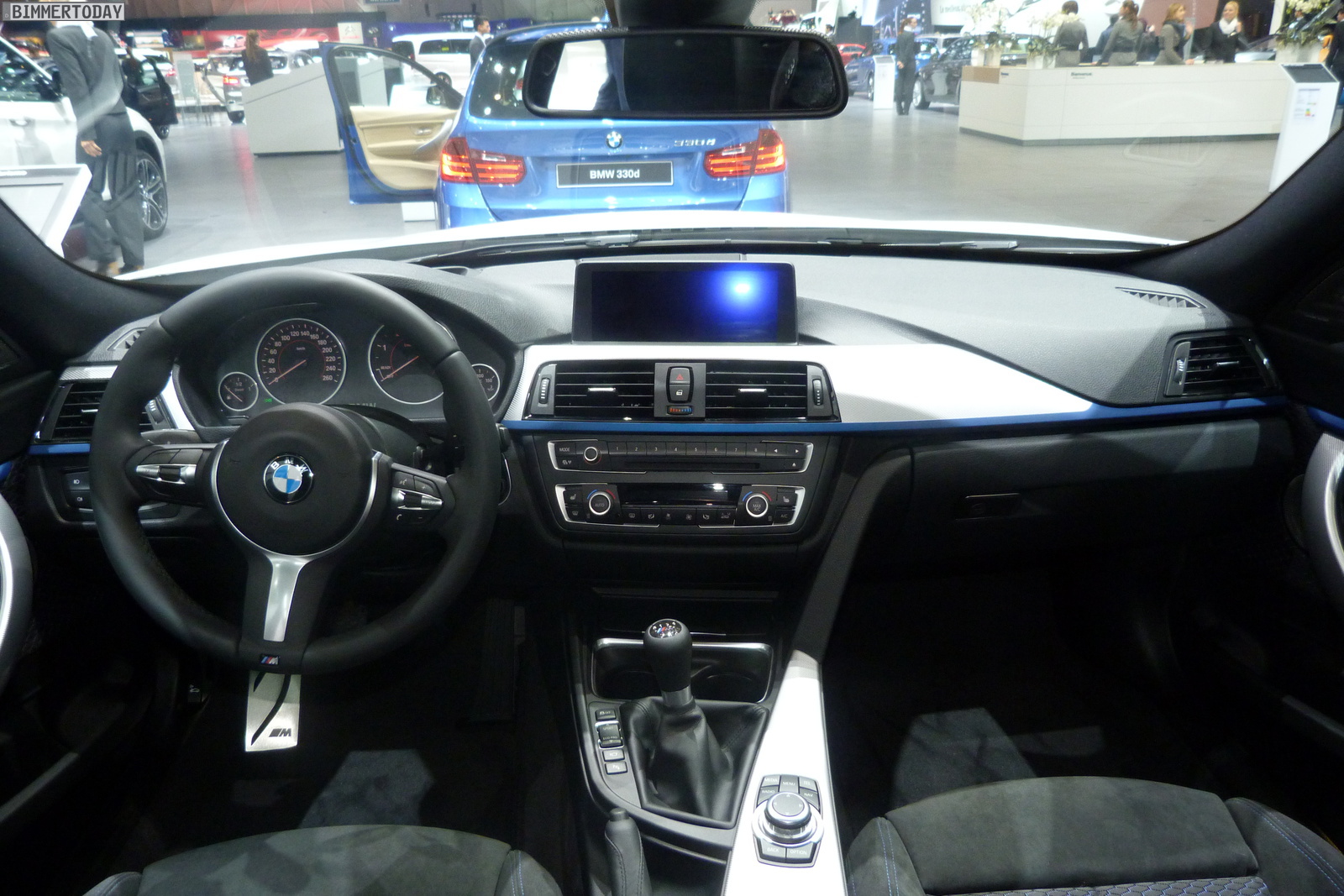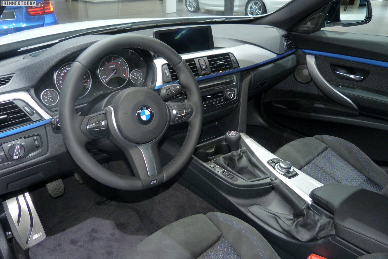 Inside the F34 GT uses the standard look of the M package with seat covers in fabric and Alcantara, and aluminum interior trim with accent trim in Estoril Blue. In addition, the new M Steering Wheel with a three-spoke design is included as well.