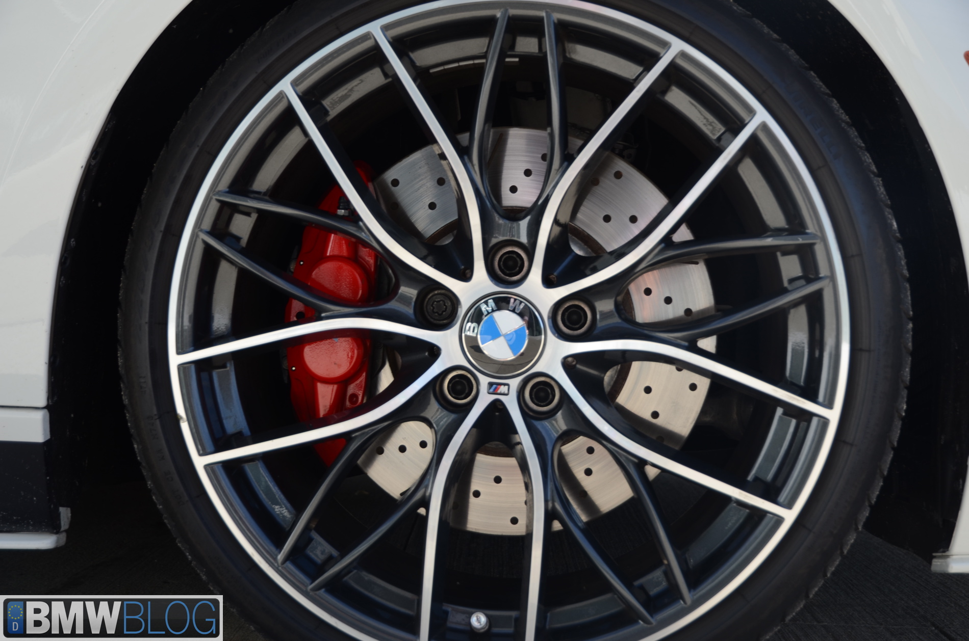 The option list conveniently placed on the side window are showing the following M Performance Parts that went into this build: Black Kidney Grilles ($130), M Performance Exhaust ($1,250), M Performance 20″ Forged Lightweight Tire & Wheel Set – style 405M ($4,750), M Performance Big Brake Kit ($2,700), Carbon Fiber Gear Shift Knob with Alcantara Boot ($225), Carbon Fiber Mirror Caps ($650), Carbon Fiber and Alcantara Interior Trim Kit ($950), Sport Stripes ($250), M Performance Aero Kit, Splitter, Rocker Panels, Rear Diffuser and Spoiler, M Performance Steering Wheel with Racing Display, M Performance Suspension Kit, and the recently announced $1,100 Power Kit.