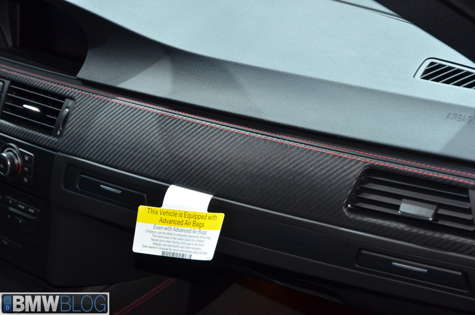 The interior of this M3 Frozen Red sports black extended Novillo leather with contrasting stitching to match the exterior color.