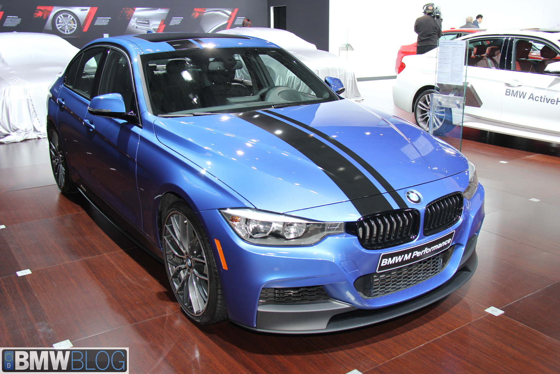 BMW displayed an F30 328i with M Performance Parts at the 2013 New York Auto Show. Featuring the Estoril Blue, the M Performance Parts 3 Series comes with the racing stripes and plenty of aftermarket parts.
