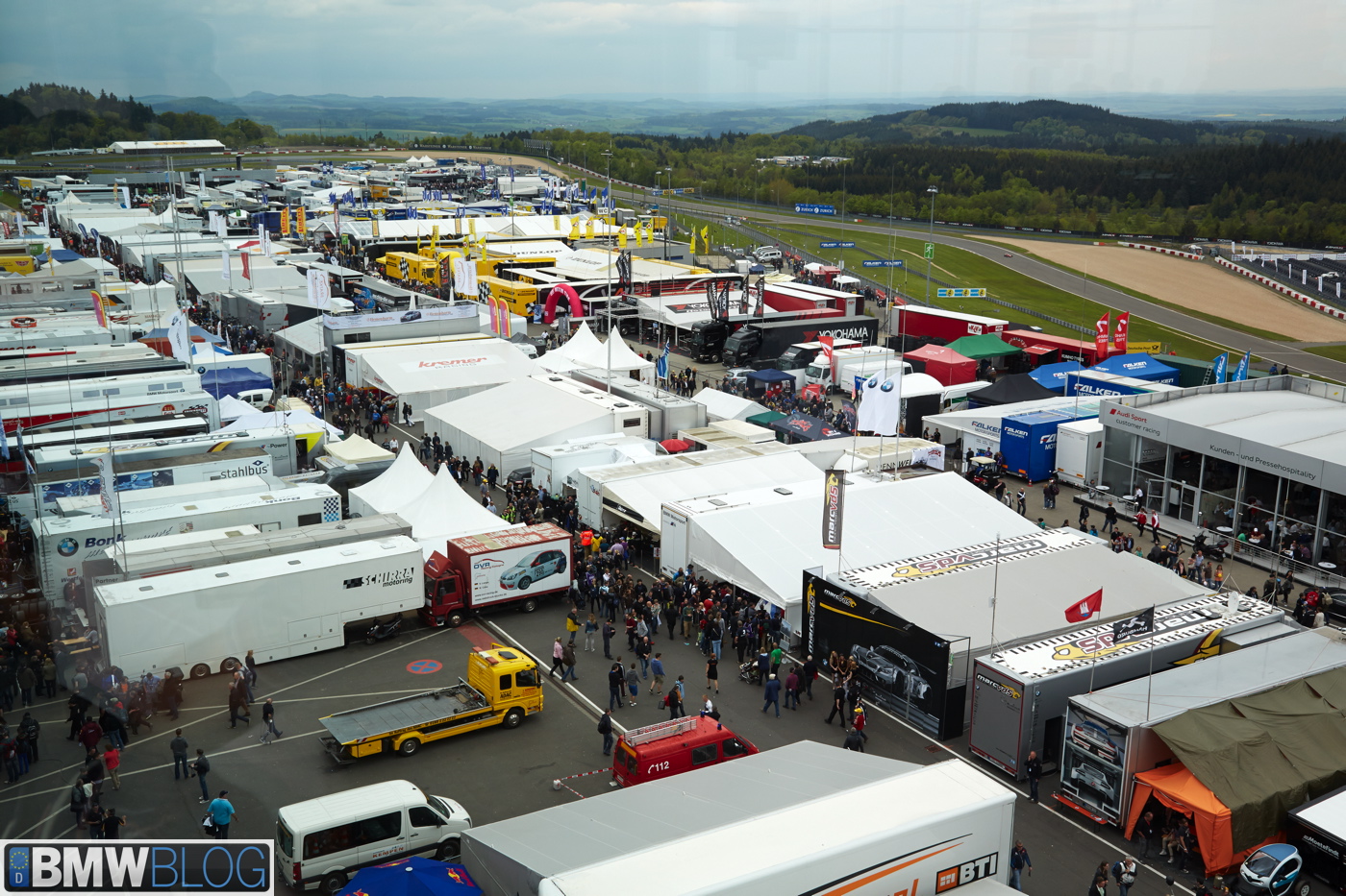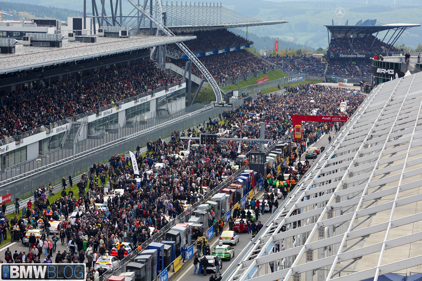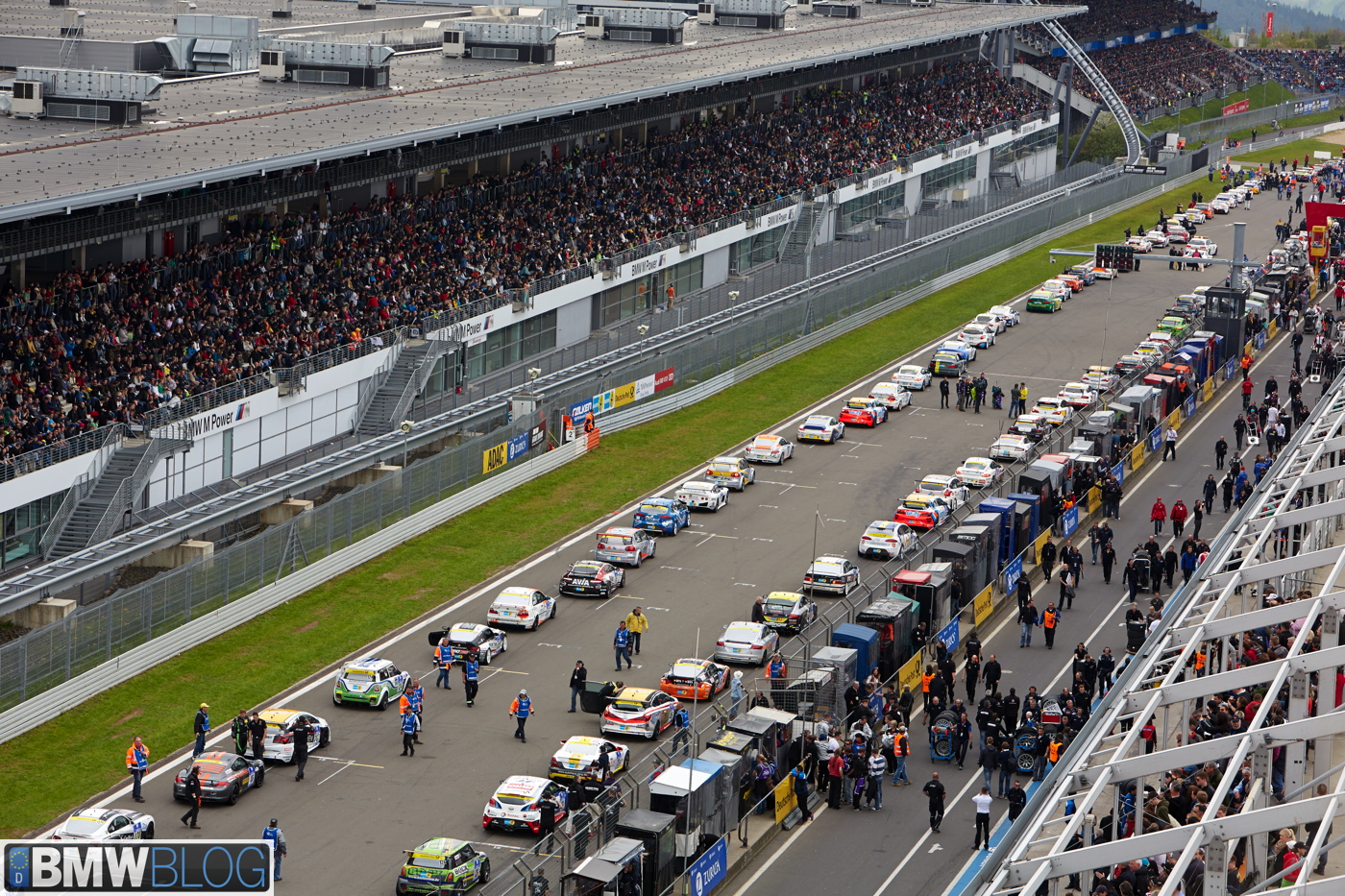 Just before 5PM, the Nurburgring track is packed, not just with hundreds of race drivers and cars, but also with tens of thousands of fans mingling on the straightline just before the race starts. We took a walk through the paddocks where you can feel the energy and excitement that comes from one of the most famous racing events in the world.