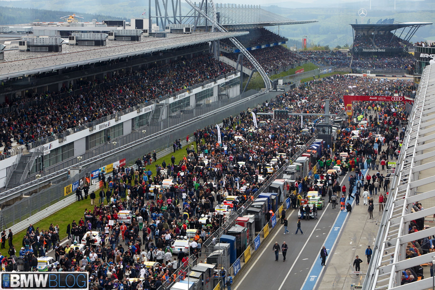 Just before 5PM, the Nurburgring track is packed, not just with hundreds of race drivers and cars, but also with tens of thousands of fans mingling on the straightline just before the race starts. We took a walk through the paddocks where you can feel the energy and excitement that comes from one of the most famous racing events in the world.