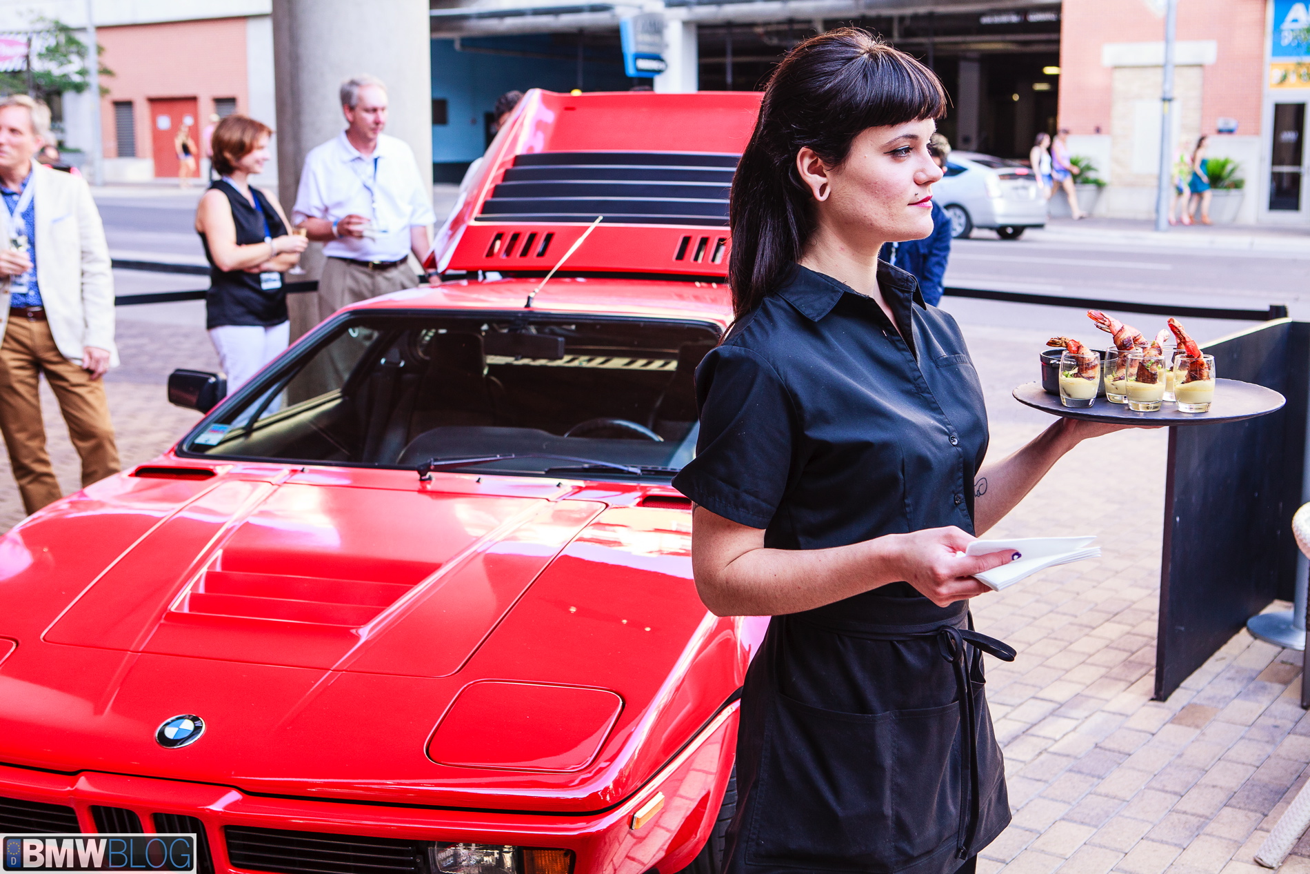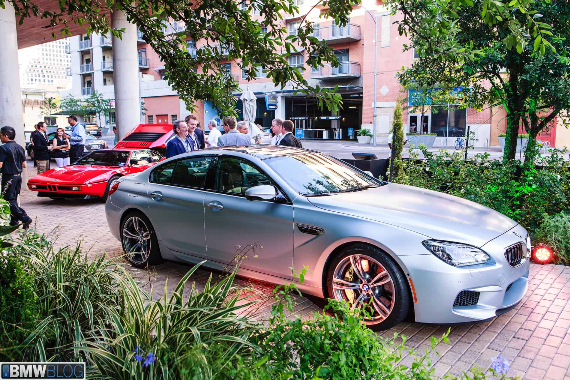 The event hotel was the W Austin, a top rated establishment. The service, room, and everything was first rate. My first stop was the bar for a cold one and I happened to meet a few attendees doing the same. It was soon time for the main event. I met some old friends and made new ones as well. Appetizers and an open bar were provided first and then a nice meal. Of course Texas style brisket was served. They called us together and announced the M6 Gran Coupe. A wall opened up to reveal the car in Frozen Silver, bathed in orange spot lights for a great effect. The interior was the individual Canyon Brown, resulting in a very sharp combination. It had the carbon ceramic brakes with gold calipers. Everyone had time to sit in and savor the car. The evening was quite enjoyable.