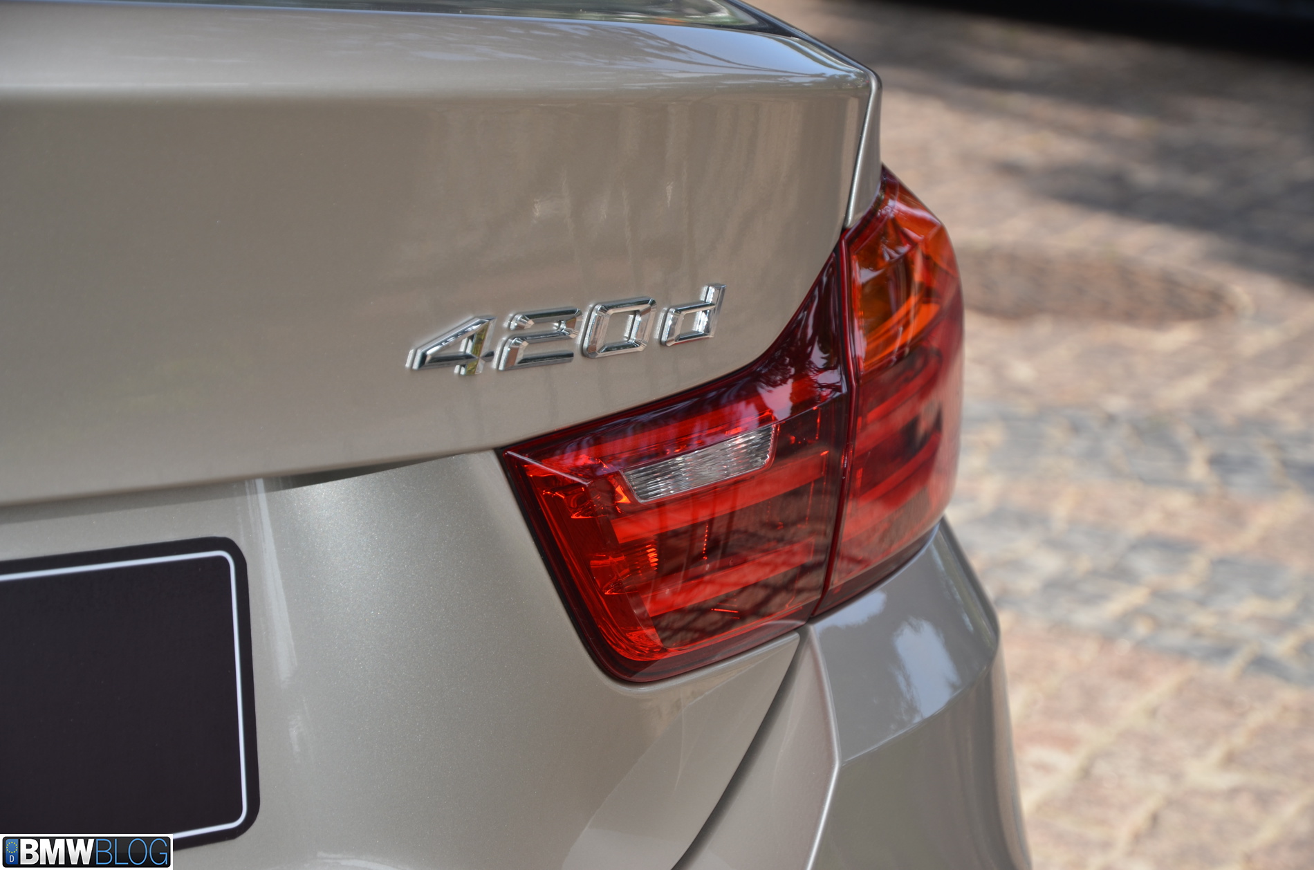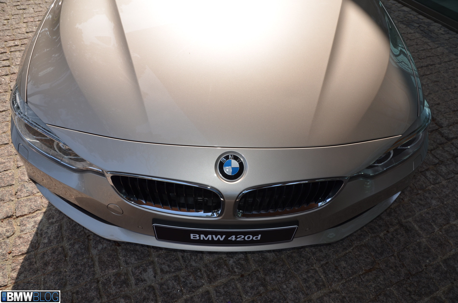 Next we took a closer look at the entry-level 420d powered by a 2.0 liter four-cylinder turbo diesel engine producing 184 HP @ 4000 rpm and 280 lb-ft of torque @ 1750–2750 RPM (380Nm). The fuel consumption is rated at 50 mpg or 4.7 L/100Km. Acceleration from 0 to 62 mph (100km/h) comes in 7.5 seconds.