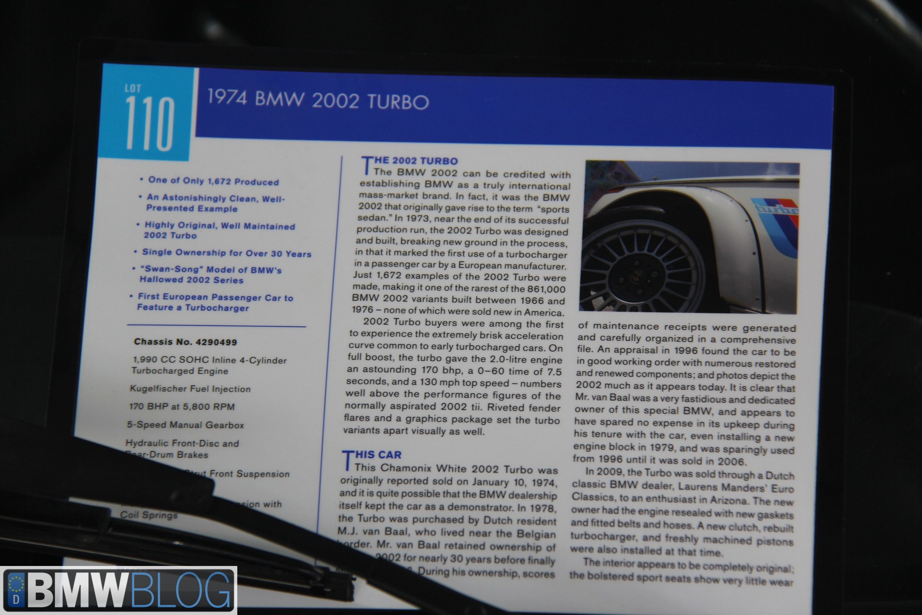 BMW highlights under the tent were an Isetta 300 that sold for $33,000 and a gorgeous 1974 BMW 2002 Turbo that still had vignette stickers from its European lineage that sold without reserve at $66,000. Previous years Gooding has sold an 1980 M1, a 1958 507 Series 2, and a 1957 503 Cab.