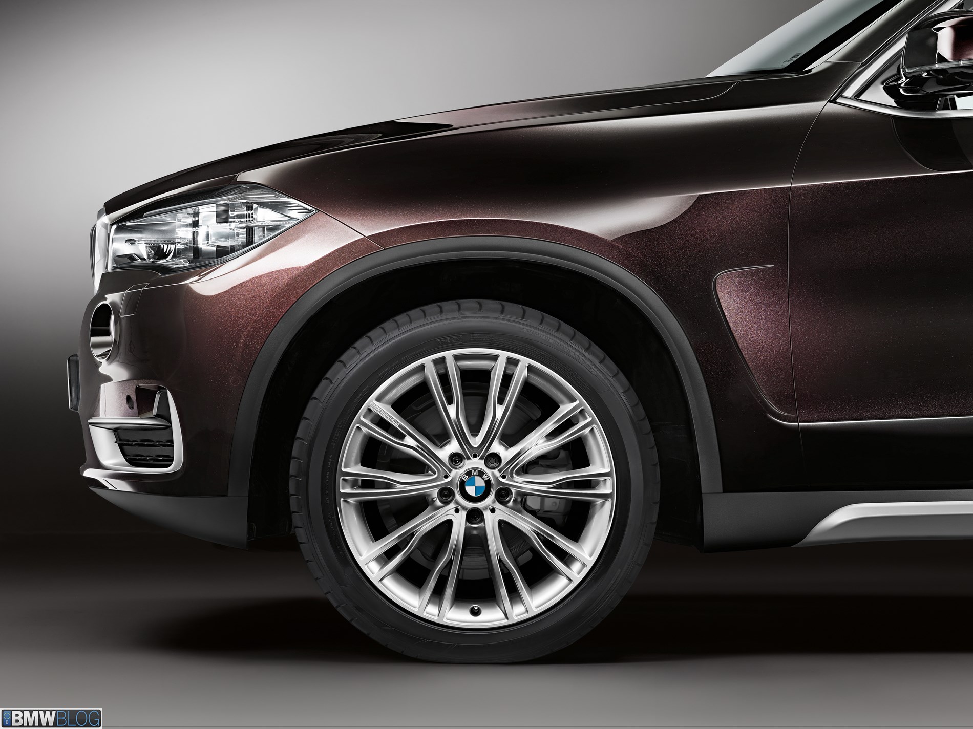 BMW Individual paintwork guarantees an impression of exclusivity at first glance. The application of up to seven layers of paint and the addition of special colour pigments make for intriguing iridescent effects, exceptional brilliance and unmatched depth. The BMW Individual finishes available for the new BMW X5 comprise the luxurious shades Ruby Black metallic and Pyrite Brown metallic. The intense lustre of these paintwork options derives from reflections triggered by red or gold pigments beneath the surface. Likewise adding an elegantly sporty touch to the exterior are the 20-inch BMW Individual light-alloy wheels in V-spoke design, fitted with mixed tyres.