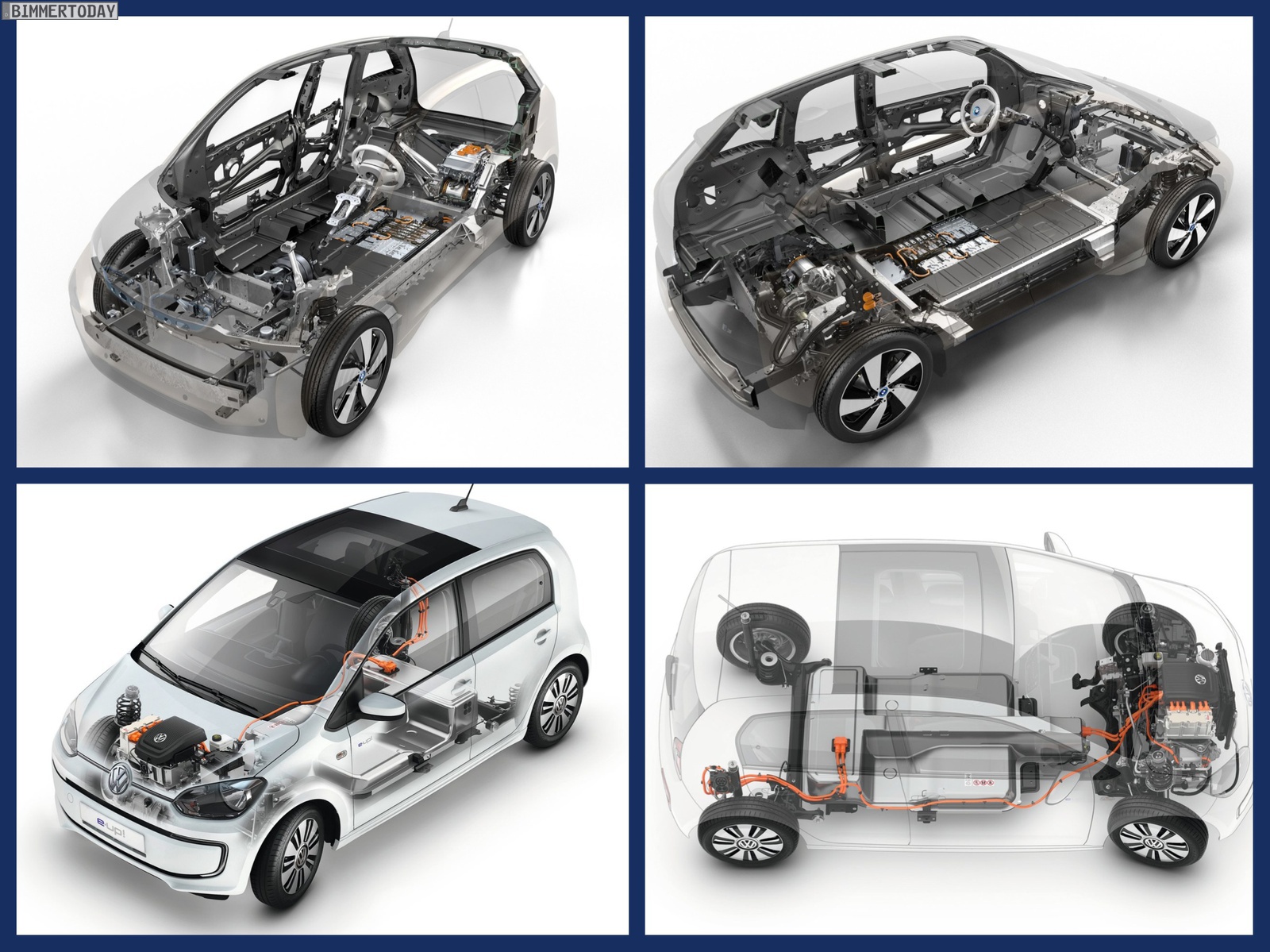 The VW e-Up weighs 1,140 kilograms while the curb weight of the BMW i3 is 1195 kg.