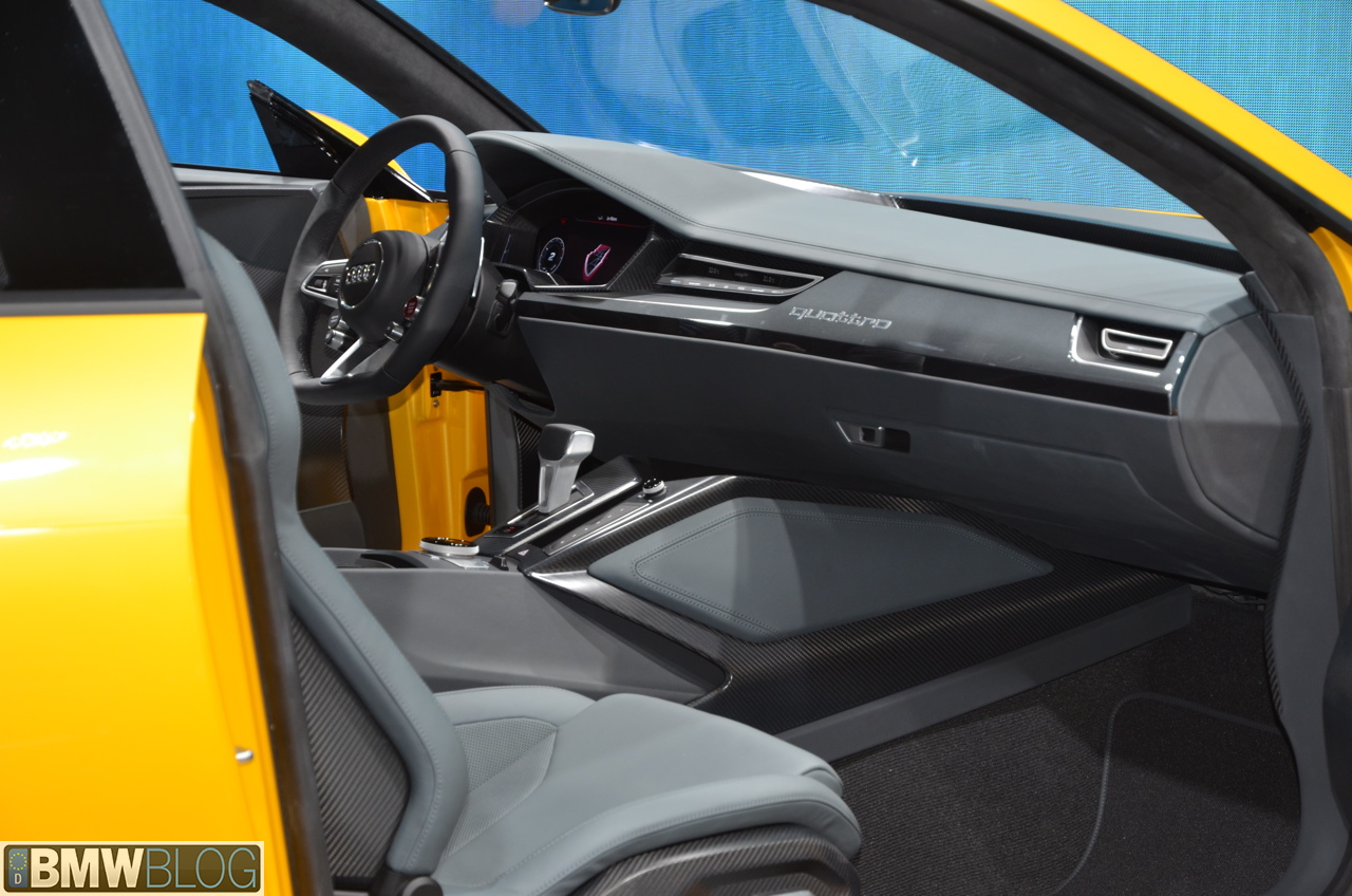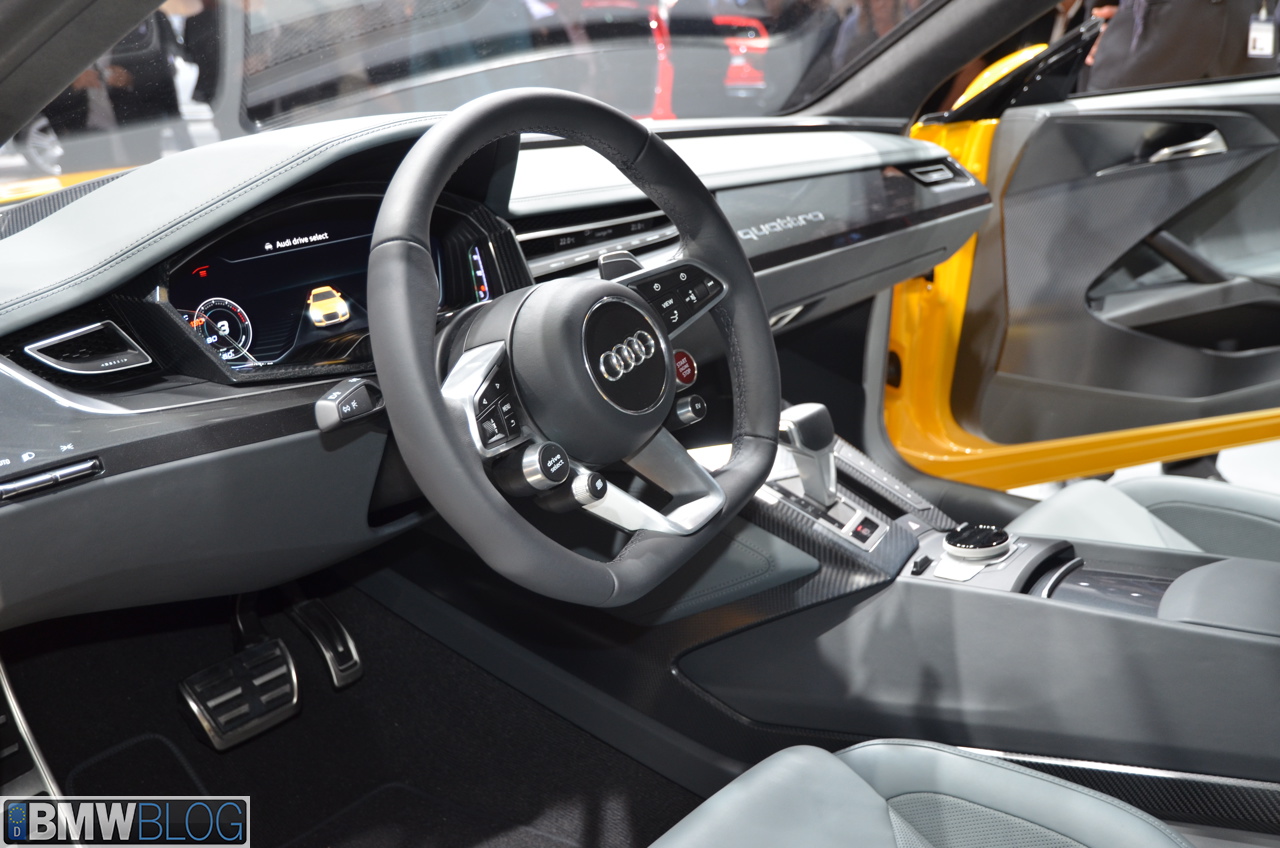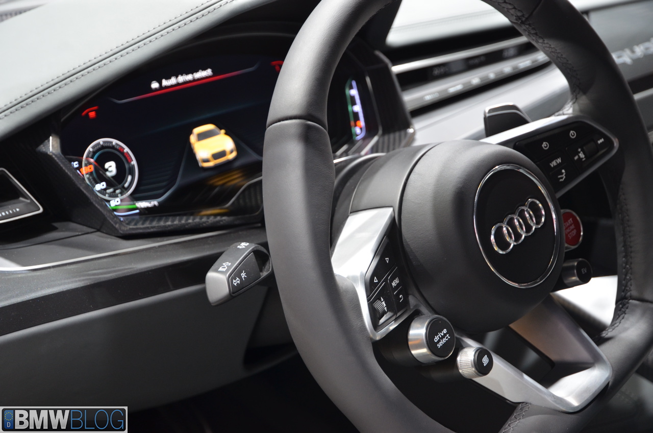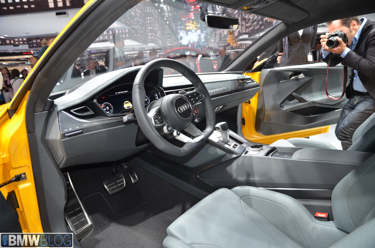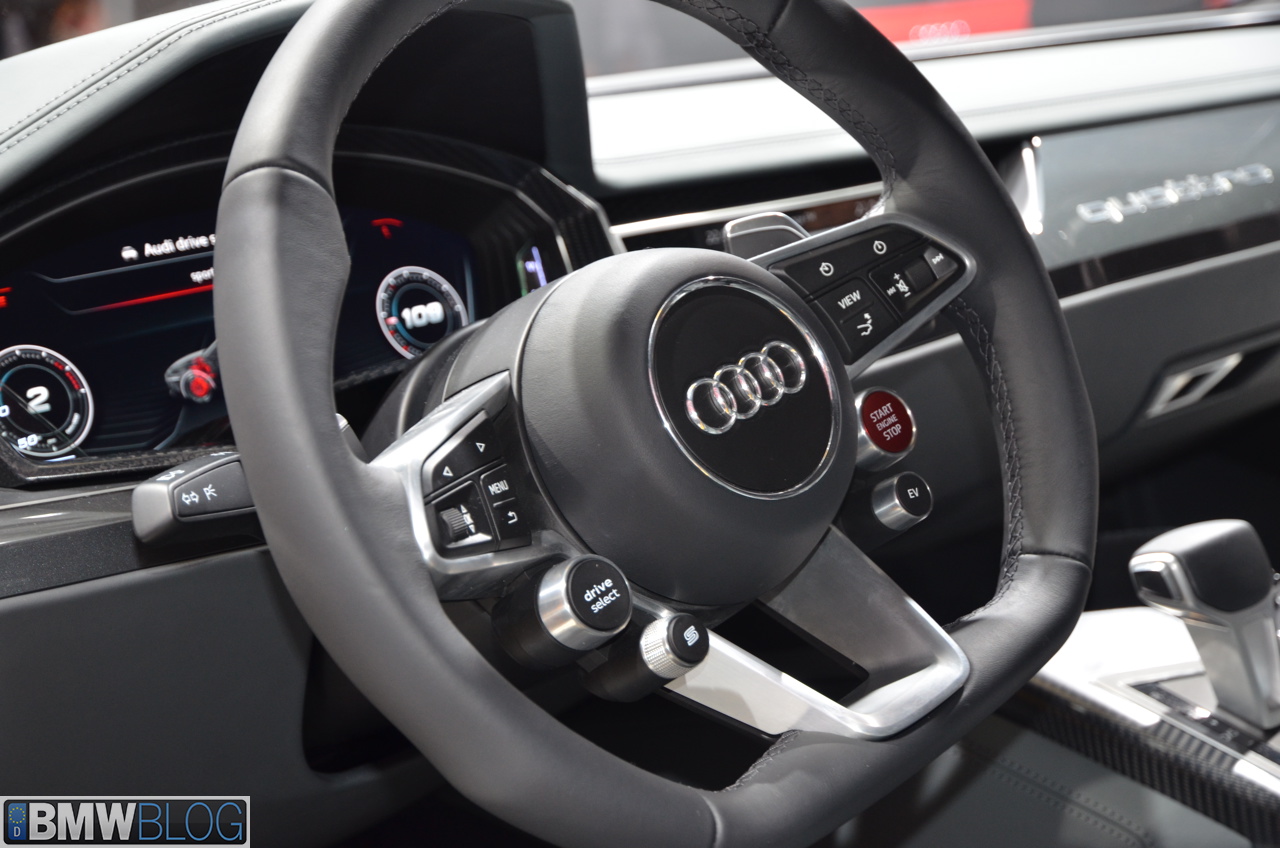 Audi is celebrating the 30th anniversary of the Sport quattro by bringing a new concept at the 2013 Frankfurt Motor Show. The Audi Sport Quattro Concept is a plug-in hybrid (a trend these days in the premium segment) outputting 560 horsepower from a conventional 4.0 liter V8 TwinTurbo engine. The gasoline powerplant is coupled with a disc-shaped electric motor location between the engine and the 8-Speed Tiptronic gearbox.