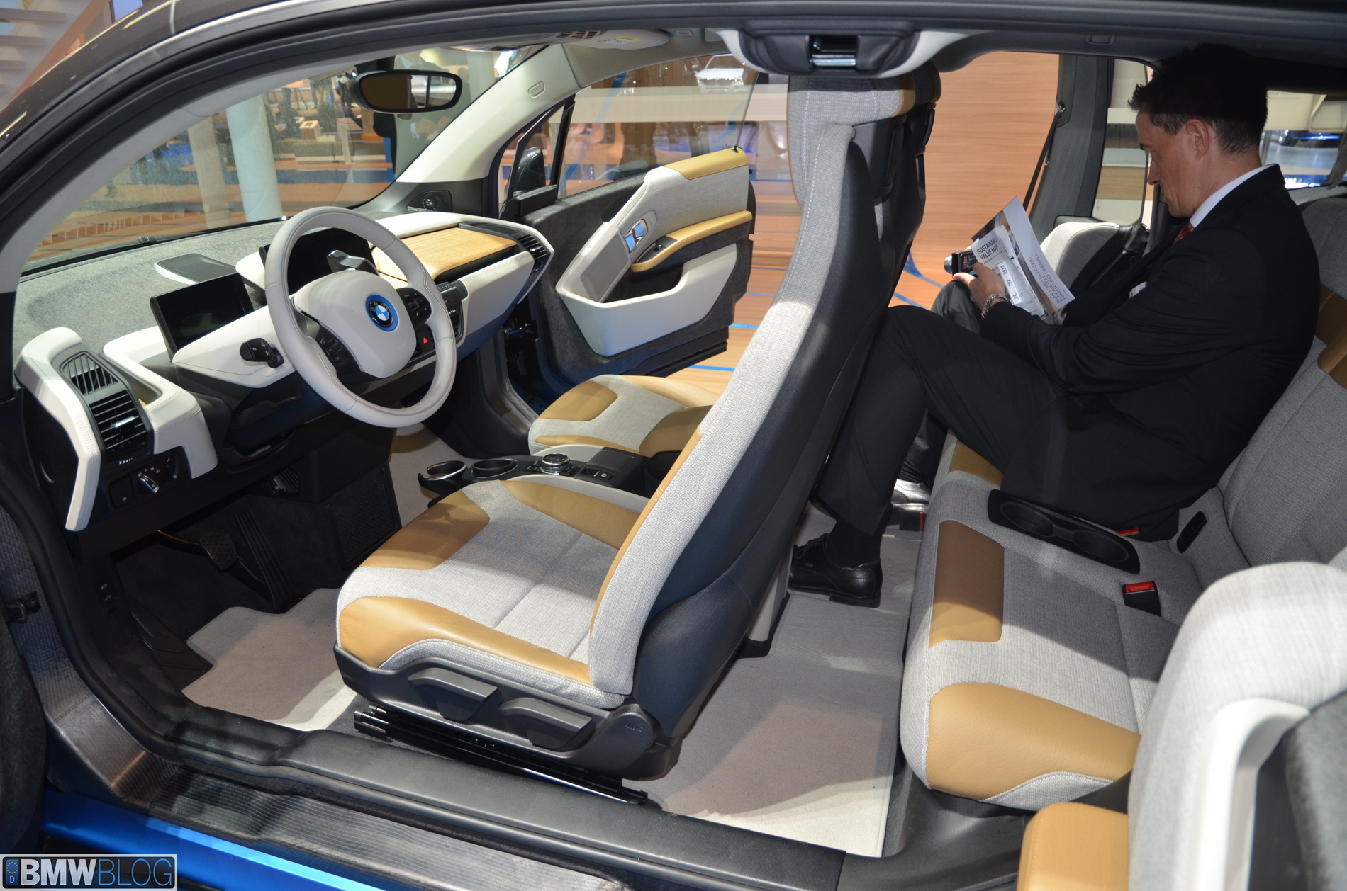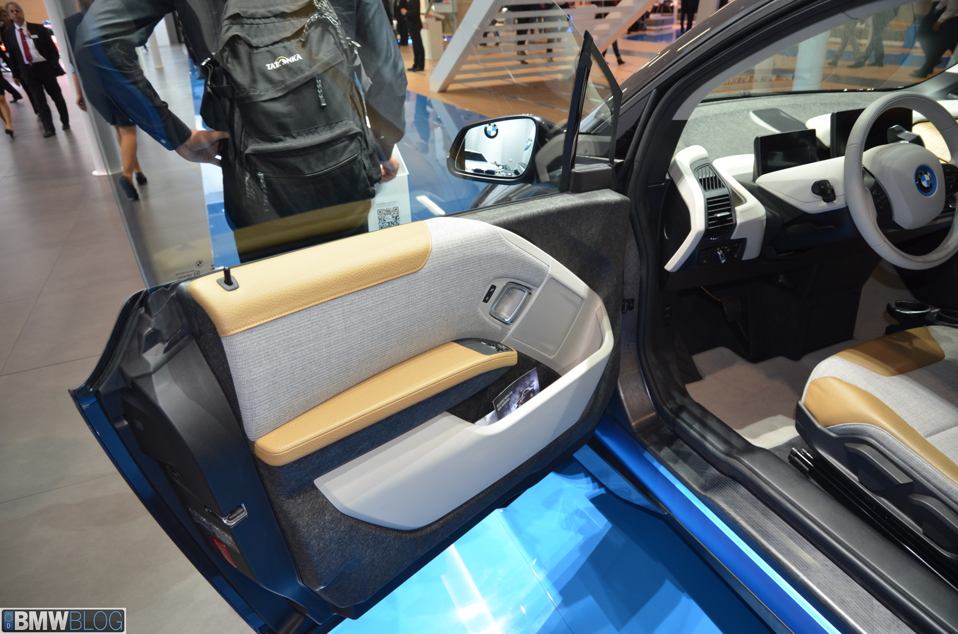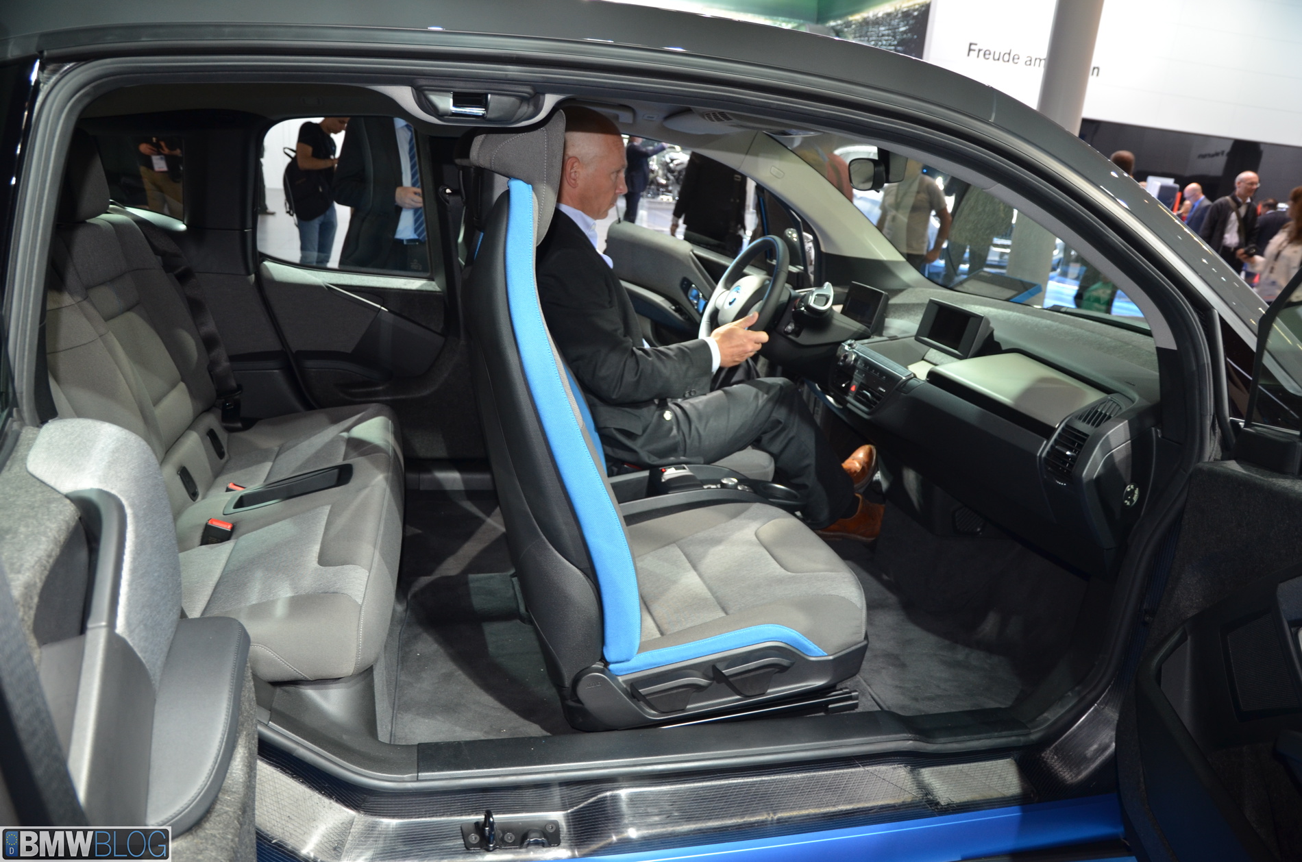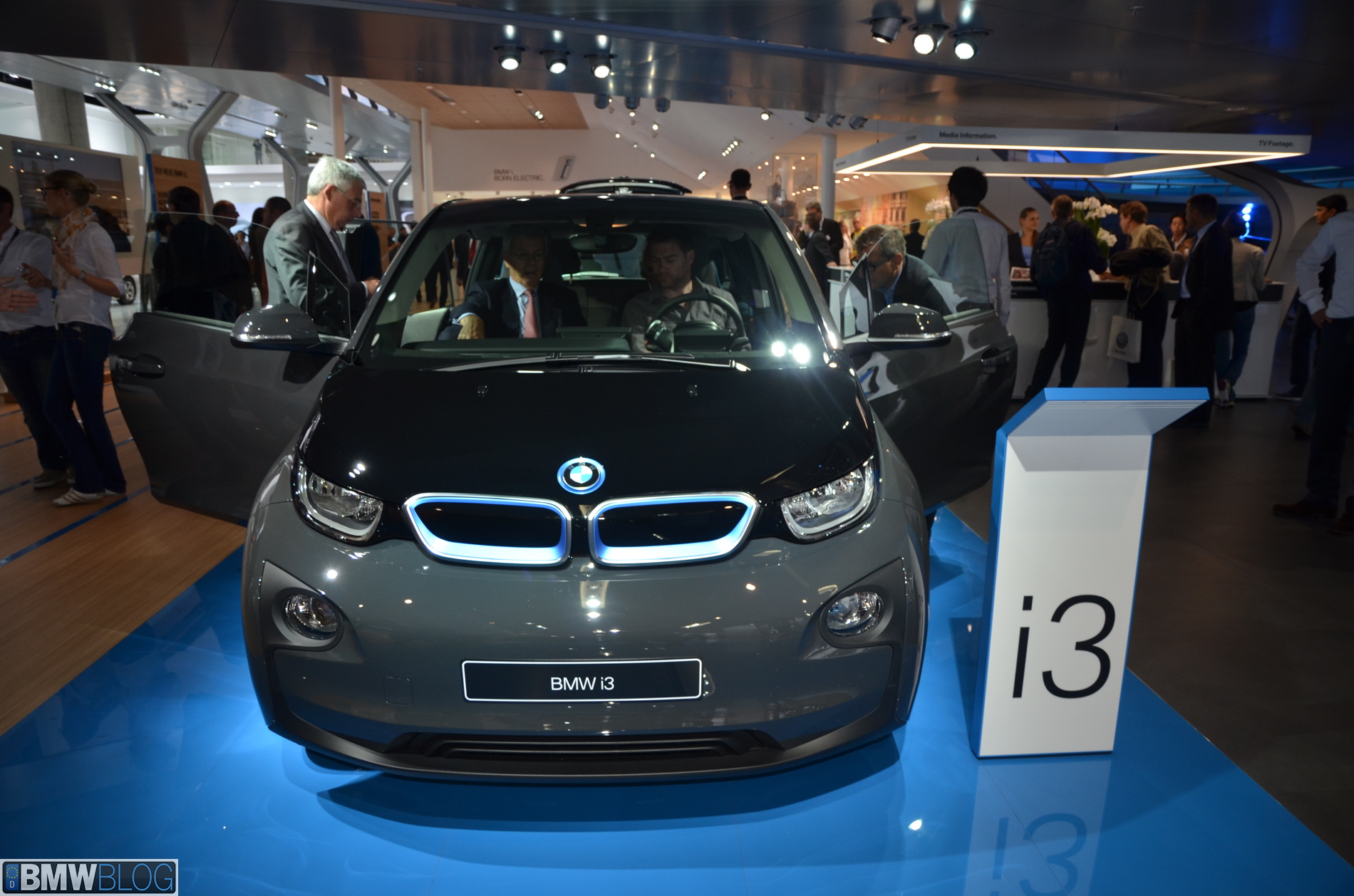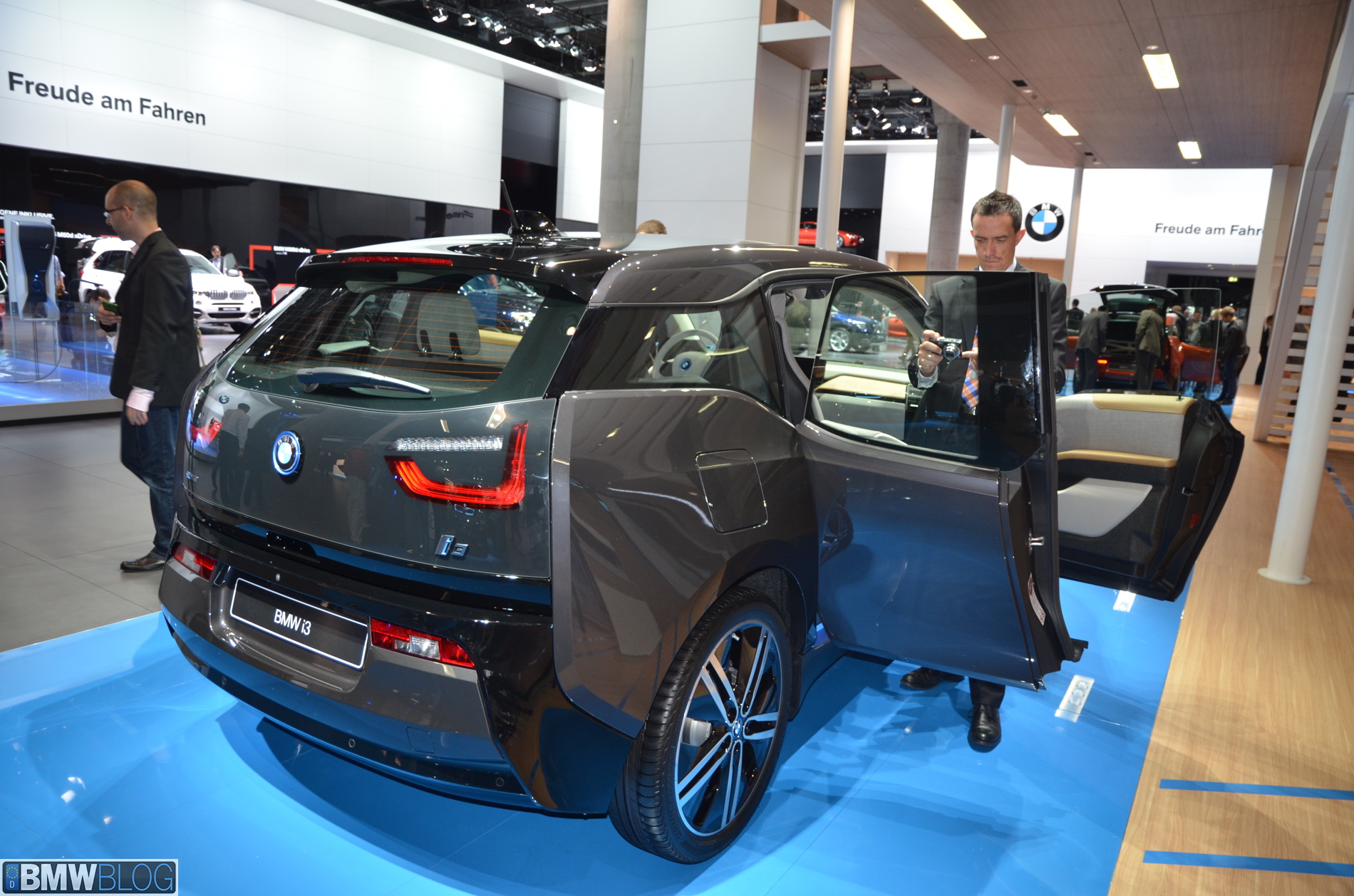 BMW i sub-brand is the main attraction at the BMW hall in Frankfurt. The electric/hybrid sub-brand is delivering their first vehicles, the i3 EV and i8 hybrid sportscar. To show how important the i3 is and to showcase to its customers the wide range of options an entire fleet of BMW i3 models are being displayed, showing the premium electric vehicle in all the possible color combinations.