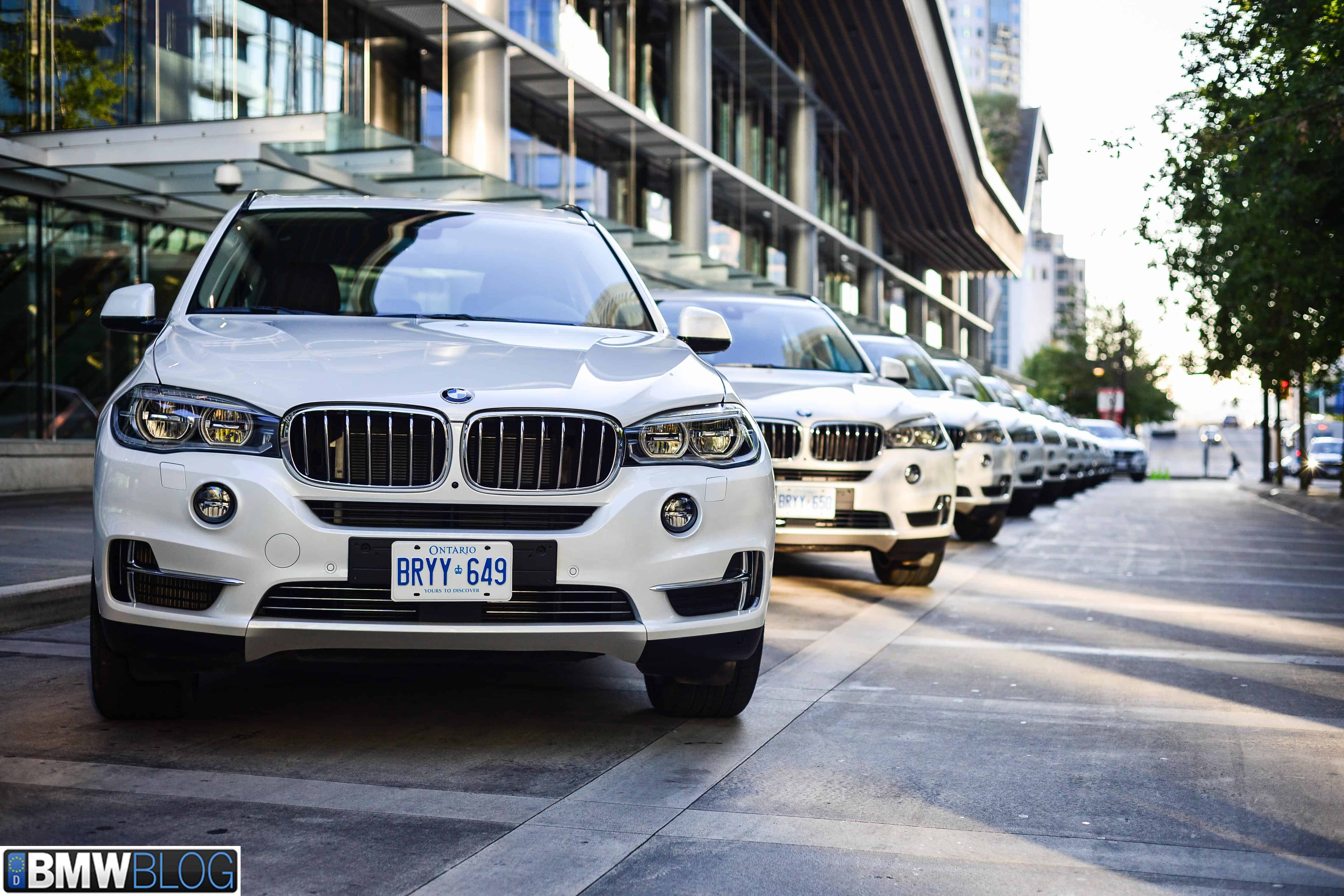I stumbled out of the front of the Fairmont Pacific Rim Hotel in downtown Vancouver, still in a jet-lagged stupor, to find an interesting sight across the street: dozens of 2014 BMW F15 chassis X5s lining the road, ready to greet their drivers. Under the soft morning light, the line X5s stood out against the modern architecture of the subway station behind it – half the cars in Space Gray and half the cars in Mineral White.