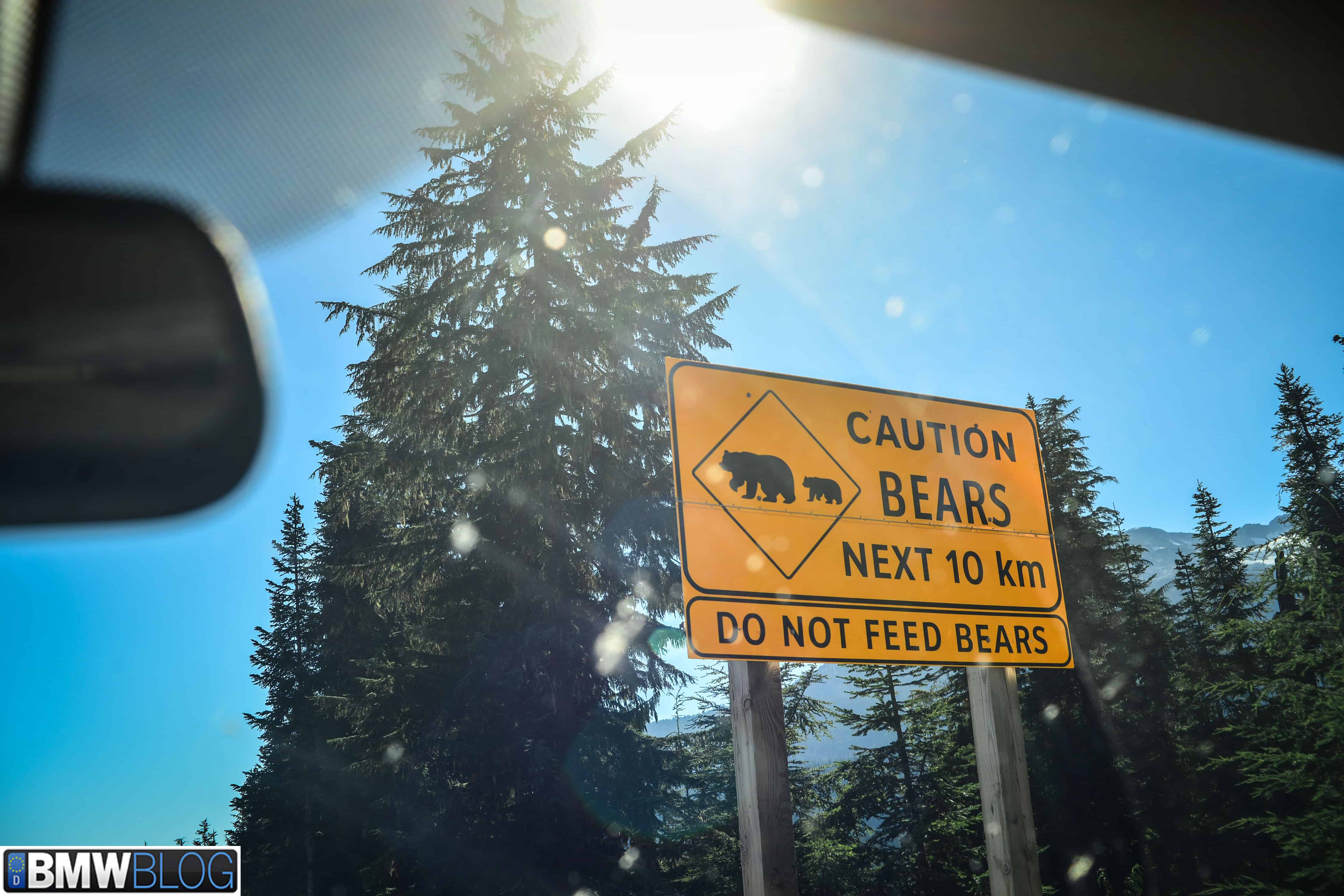 Controls and seats dialed in, we pulled back onto the highway to climb up to Whistler. Hitting the road, the difference in the V8 versus the diesel six was night and day. While the diesel was all about the torque it didn’t quite jam you into the seats. This is where the TwinPower V8 comes in handy and makes for a good time as the flirty, outgoing sister to the slightly book worm-ish X5 diesel. Each time we prodded the throttle with our right foot, we were rewarded with a shove into the seat, a burbly V8 rumble and  childish, uncontrollable laughter. This routine continued as any straight roadways presented themselves during our climb to the top of Whistler. Despite all of our fun we did notice an alarming trend in the number of signs warning us of bears the higher we climbed.